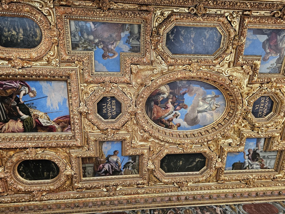 Za návštěvu však rozhodně stojí zejména interiér Dóžecího paláce. V mnoha sálech budete obdivovat nádherné malby a fresky na stropech, pozlacené a bohatě zdobené zdi i portály a krásný nábytek.