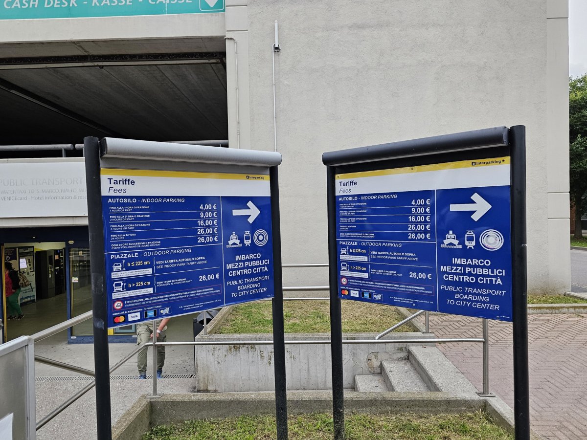Celodenní parkování (počítá se 24 hodin od vjezdu) stojí 28 EUR a detailní informace se dočtete na webu parkoviště: veneziacenterparking.com.