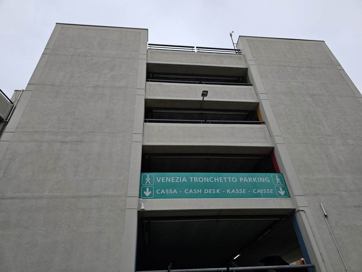 Nejlevnější a největší garáže se nacházejí na nejvzdálenějším konci ostrova Tronchetto. Na centrální Piazzale Roma se dostanete automatickým vláčkem za 1,50 EUR během 10-15 minut i s čekáním.