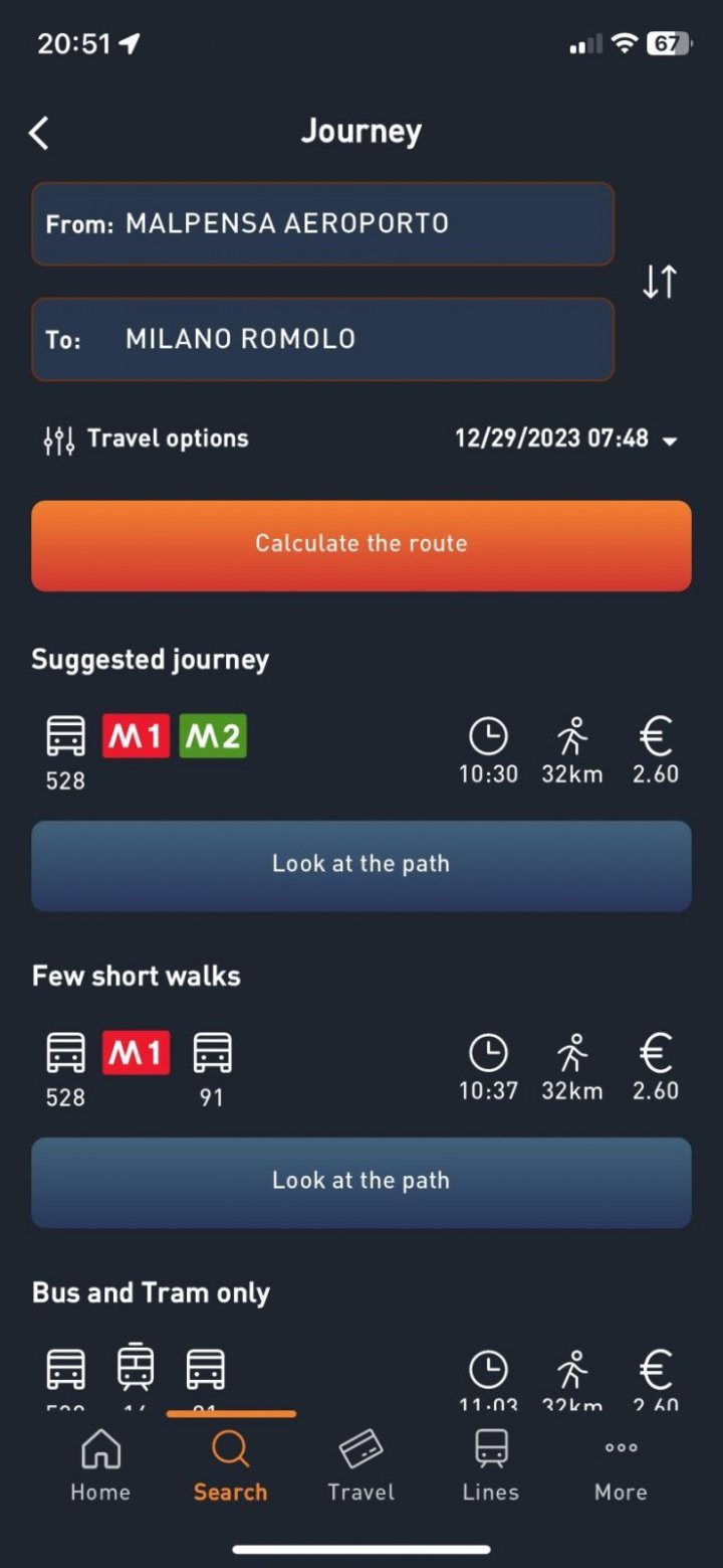 Nejlépe funguje vyhledávání spojení mezi konkrétními stanicemi v mobilní aplikaci ATM (dostupné na: Google Play / App Store), na počítači pak hledejte přes oficiální web Giromilano.it.