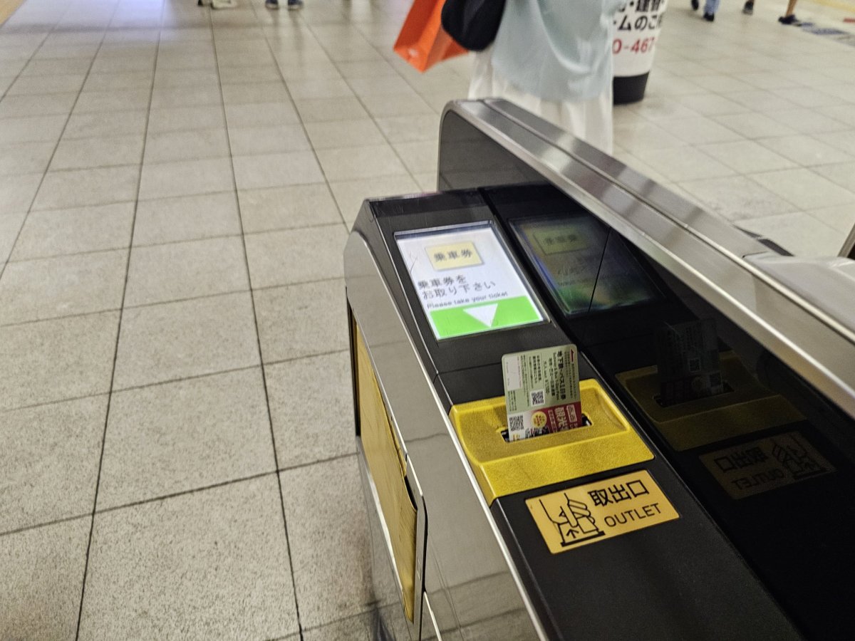 Papírovou jízdenku vložíte turniketu na jedné straně a na druhé straně vám ji turniket vrátí. Nezapomeňte si jízdenku vzít, protože ji opět budete potřebovat při výstupu ze stanice.