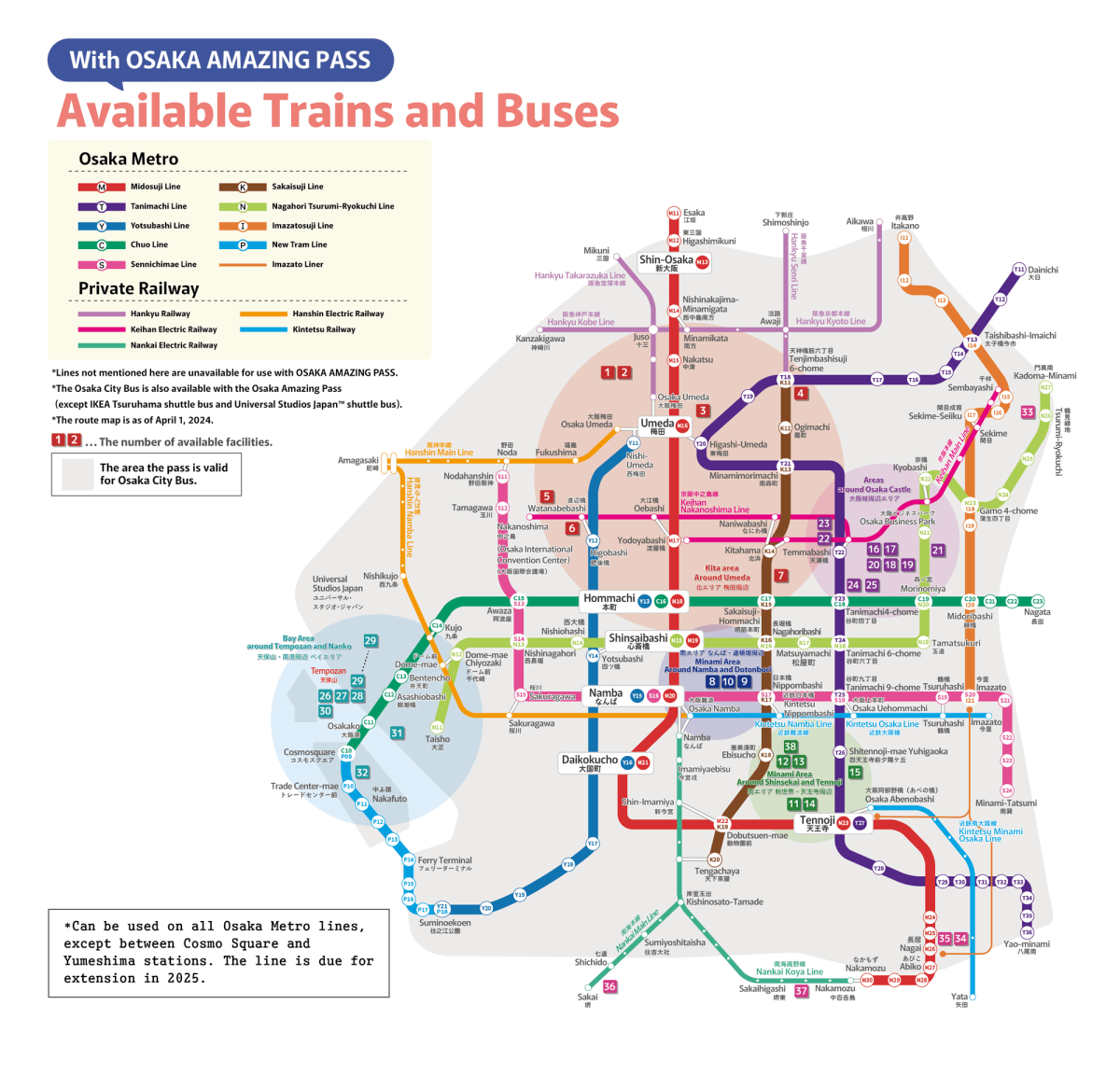 S turistickou kartou máte možnost neomezeně jezdit veřejnou dopravou v rámci hranic Ósaky (neplatí tedy například pro cestu na letiště Kansai či do měst Kobe, Kjóto, Nara, ale ani do národního parku Minoo.