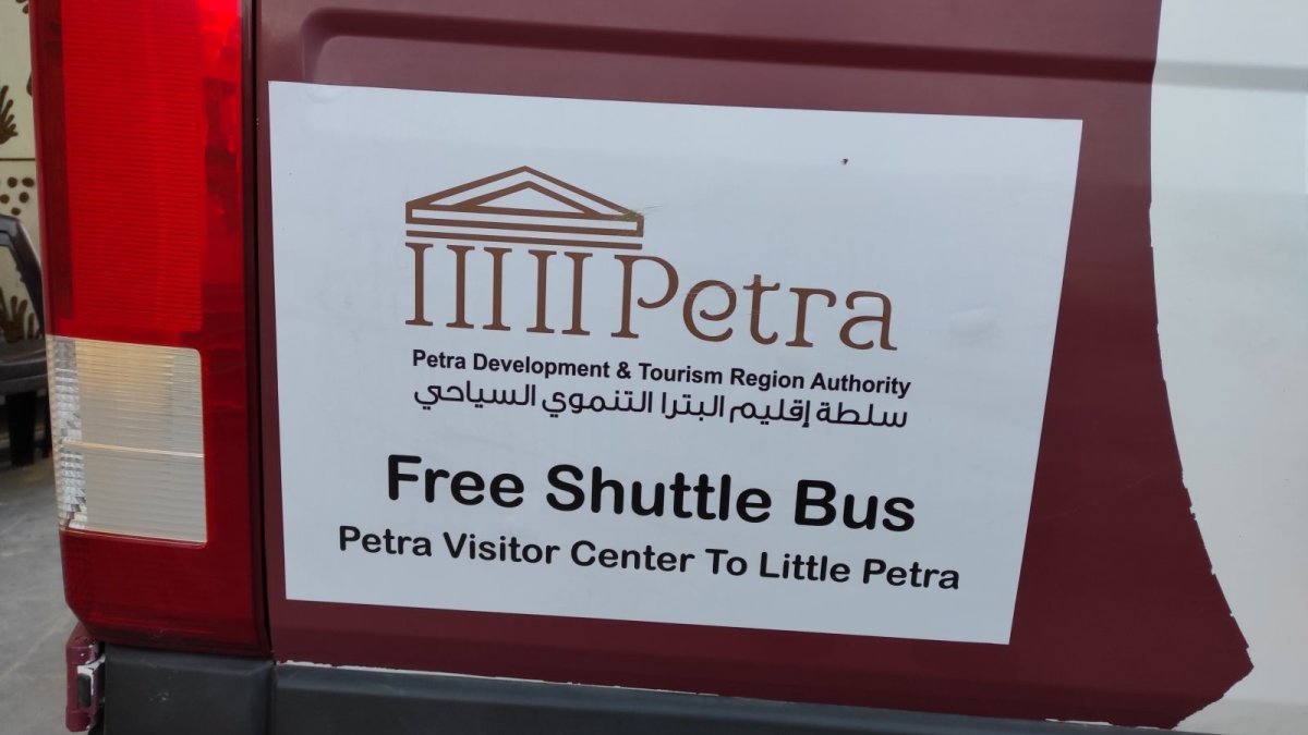 Každé ráno jede zdarma minibus Alpha (na kase u vstupenek ve Visitor centru nám řekli, že první jede v 7.00 hod., nakonec jel v 7.20 hod., je bílo-růžovo-fialový) zezadu budovy Visitor centra do Malé Petry - viz fotky minibusu. Při vstupu ukazujete řidiči zakoupenou vstupenku do Petry.