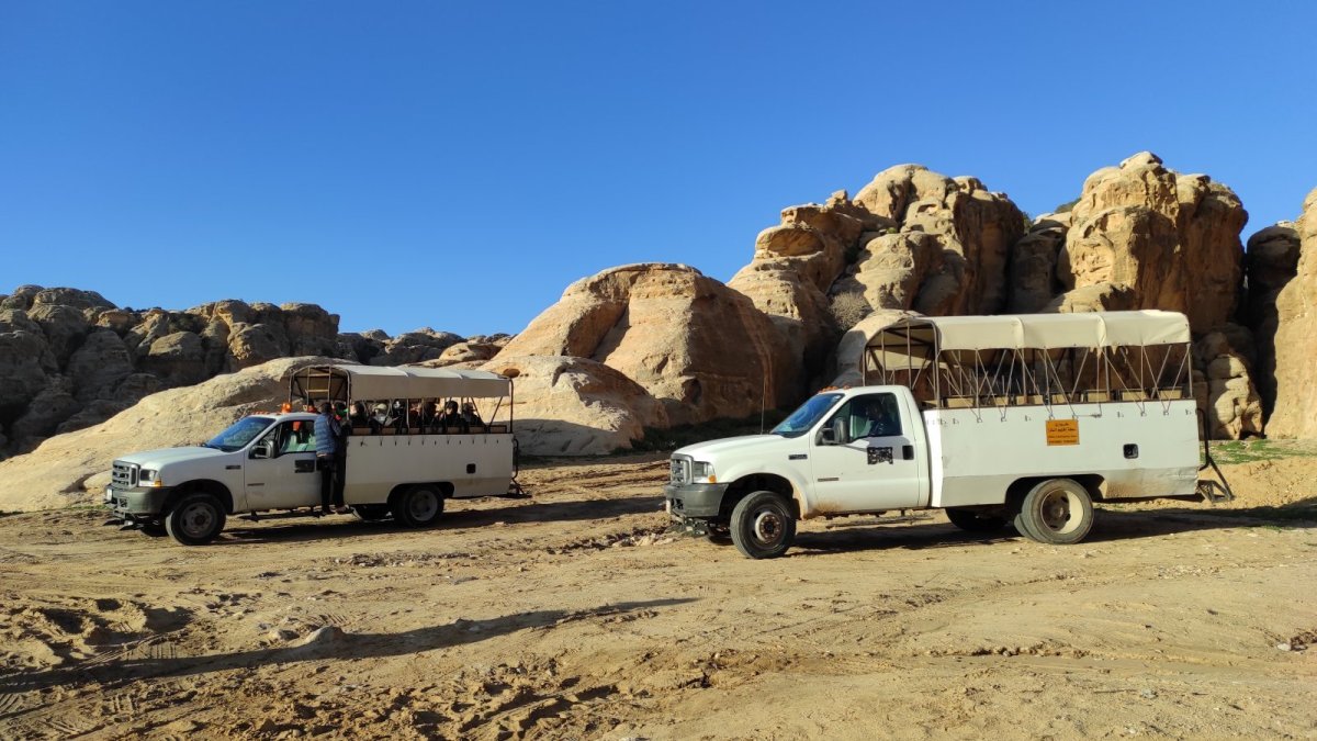 Šli jsme i s dětmi (9 let) z malé Petry pěšky k Monastery, kde skoro nikdo ještě nebyl (velmi hezký trek s výhledy na hory - viz fotka) a dále prošli celou Petru až k parkovišti u Visitor Centra - na google mapách i mapy.cz mj. "Ad-Deir (Monastery) Trail". Je možno si to zkrátit o 5 km, pokud z Malé Petry pojedete jeepem směrem k Monastery (za 5 JOD/osoba). My tento úsek šli pěšky cca hodinu a nelitujeme.