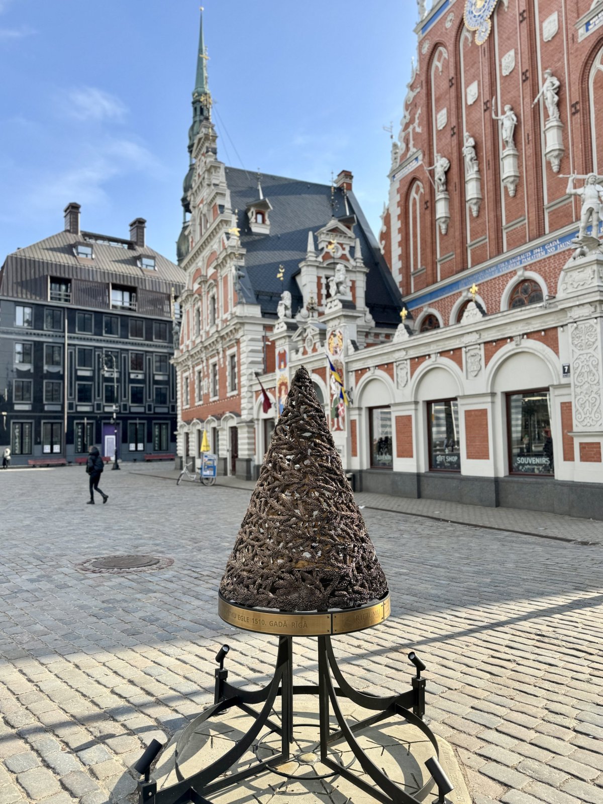 Středobod Rigy a místo, odkud je pořizováno nejvíce fotografií, najdete u historické budovy Dům Černohlavců (lotyšsky Melngalvju nams).
