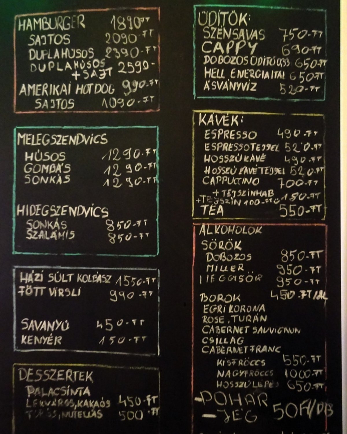 Langoš se dá najít i za 1500 Ft ,Káva za 490 Ft ,burger za 1890 Ft atd.