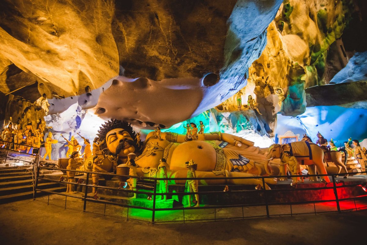 Mnohými cestovateli přehlížená jeskyně Ramayana Cave se nachází těsně za výstupem z vlakové stanice – jakmile opustíte poslední bránu, ohlédněte se prudce doleva.