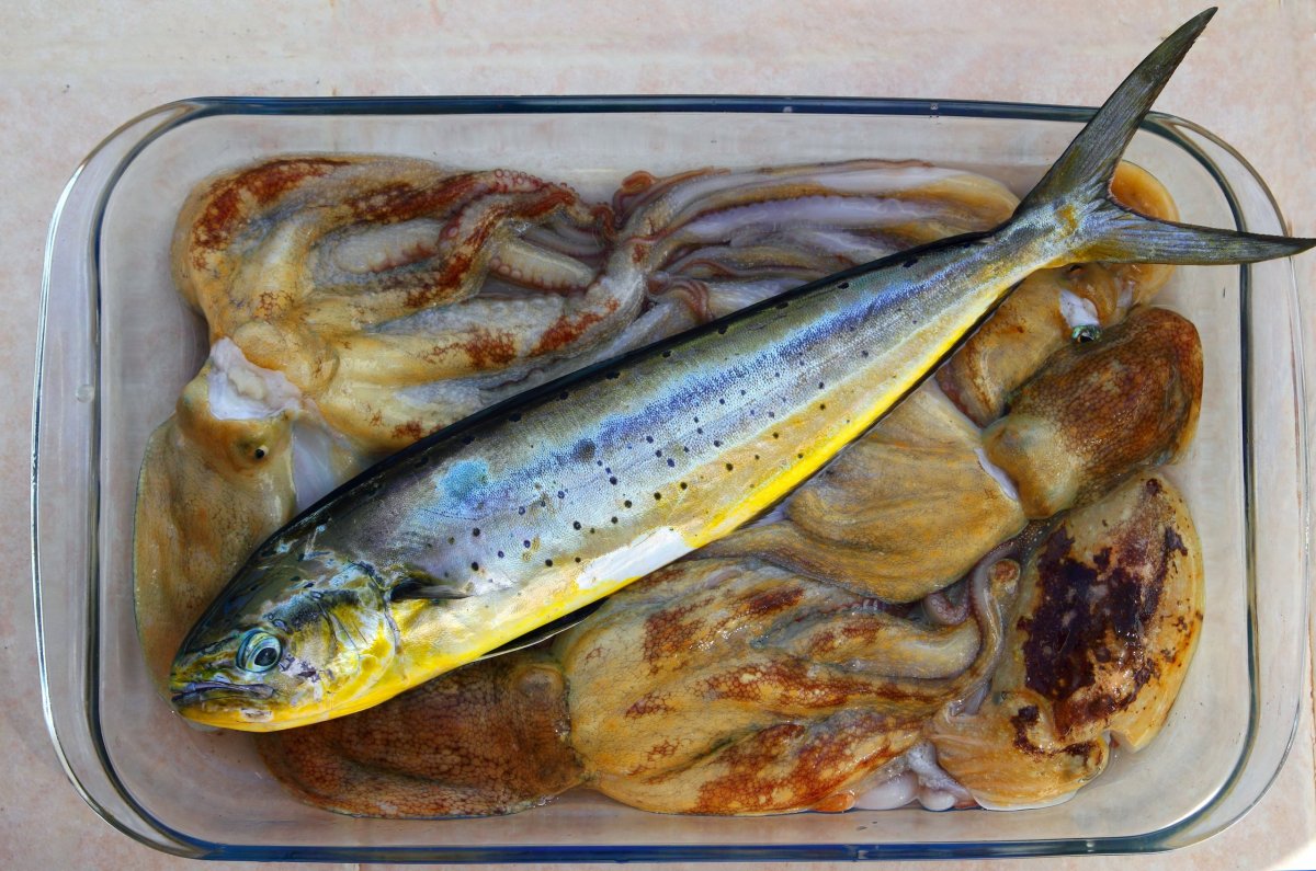 Na jídelních lístcích najdeme mnoho pokrmů připravených z mořských ryb či plodů moře. Nejčastěji si můžeme objednat různými způsoby upraveného okouna, mečouna, tuňáka, dokonce i delfína. Mimo ryb si pochutnáte na chobotnicích či olihních. Jídlo je podáváno ozdobené a dochucené čerstvými bylinkami nebo přelité smetanovou omáčkou.