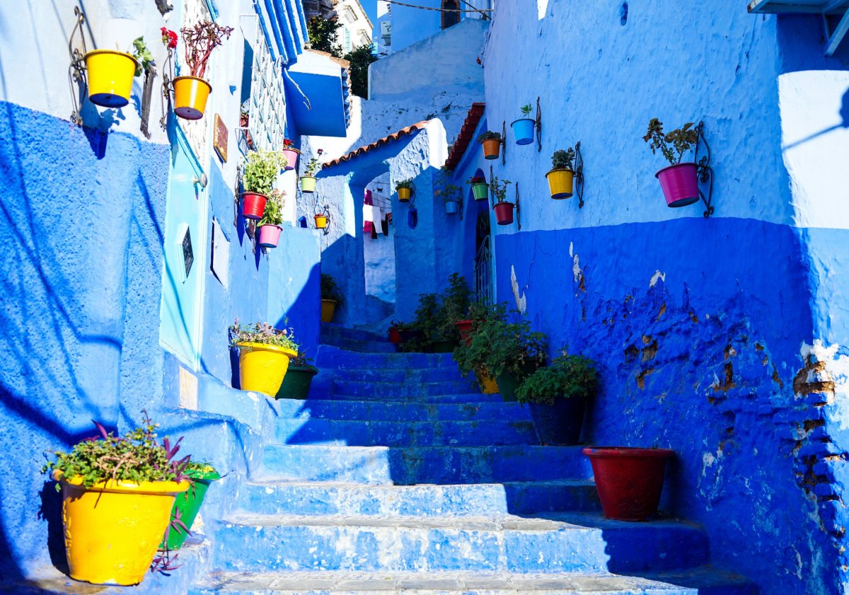 Chefchoauen, zvaný také modré město, je malé horské městečko ležící na úpatí pohoří Rif na severu Maroka. Projděte se spletí uliček a alejí vedoucích mezi modrobílými domky a dostanete se až k pevnosti z červeného pískovce s přilehlou mešitou. Nebo vyrazte na výlet po okolních kopcích.