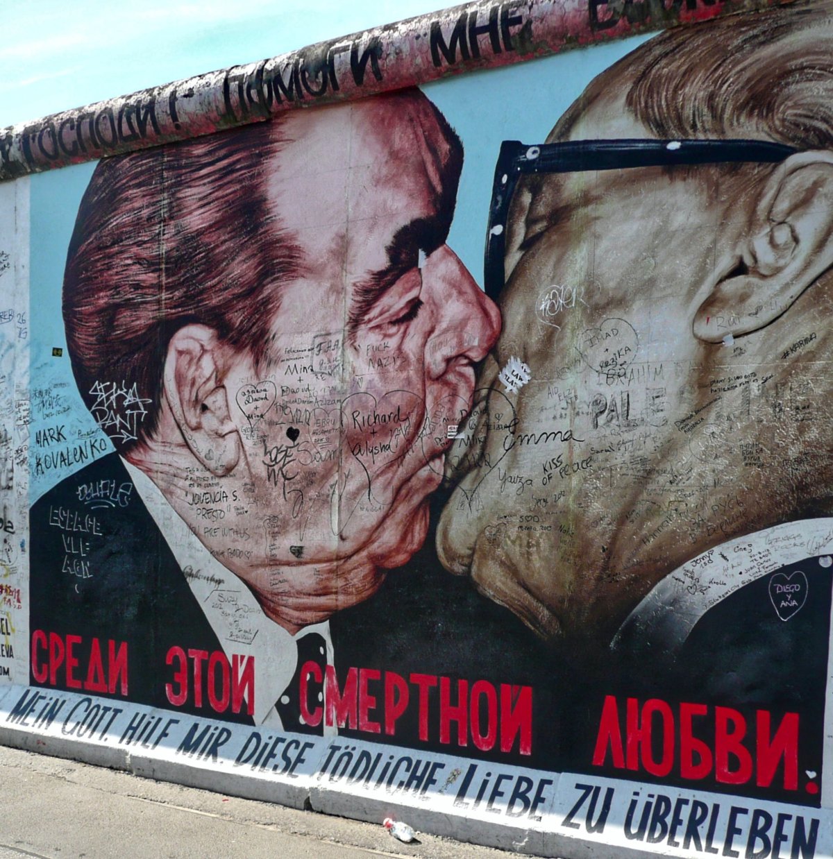 K nejoblíbenějším dílům na East Side Gallery patří jednoznačně líbající se generální tajemník socialistické strany NDR Erich Honecker s vůdcem Sovětského svazu Leonidem Brežněvem.