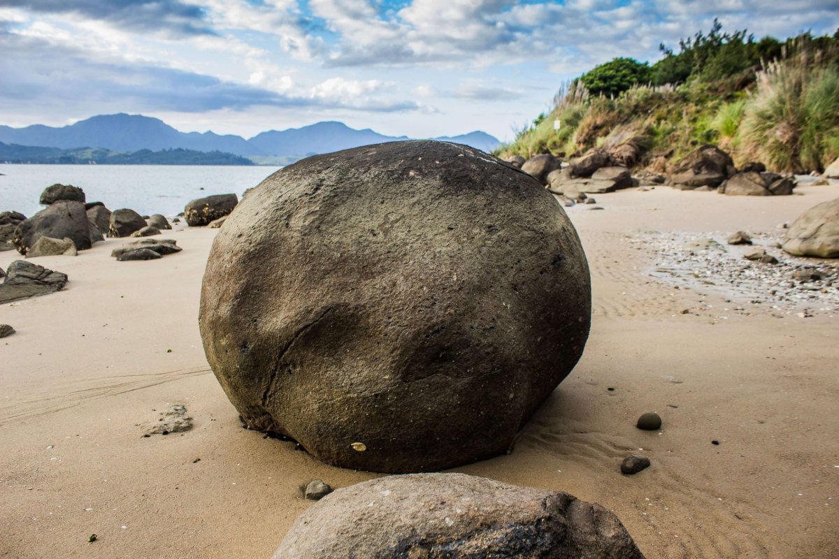 Snadná hodinová procházka po pláži mezi Koutu a Kauwhare vás zavede k místu s obřími kamennými koulemi, největší měří až 3 metry. Místo se nachází 8 kilometrů od městečka Oponini.