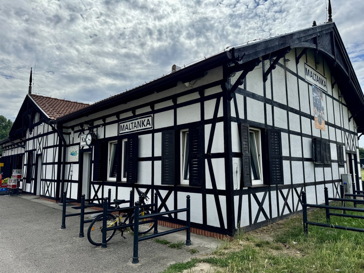 Hlavní nádraží úzkorozchodné železnice Maltanka se nachází na pravém břehu jezera nedaleko autobusové a tramvajové zastávky Rondo Śródka. Budova byla postavena v roce 1998 v pruském architektonickém stylu a její součástí je pokladna, čekárna a restaurace.