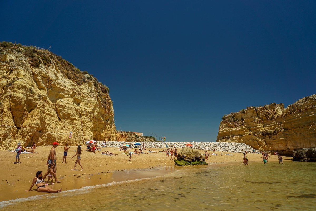 Jednou z nejoblíbenějších pláží je definitivně Praia de Porto Mós na západním předměstí Lagosu. Nejsou tu sice zapeklitá bludiště skalních měst, ale i přesto se zde můžete těšit ne úžasné výhledy. Pláž se táhne v délce takřka 2 km pod 40-50 metrů vysokými bílo-žlutými útesy a ve své východní části, kde útesy klesají a vytvářejí tak pohodlný přístup, najdete i množství restaurací, půjčoven lehátek i mořských kajaků.