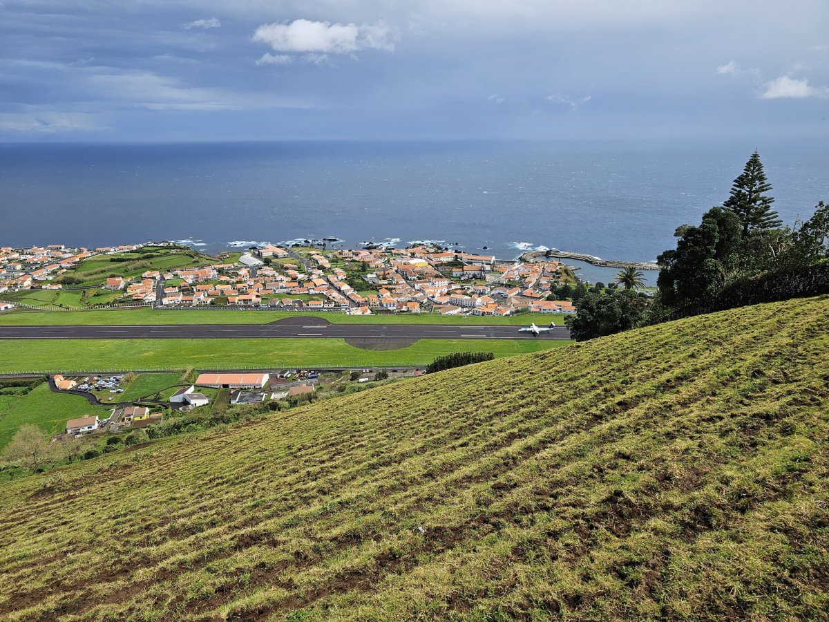 Jako na dlani budete mít pod sebou letiště Flores FLW, část města Santa Cruz das Flores, ale také zvlněnou krajinu vnitrozemí. V dálce na horizontu pak uvidíte ostrov Corvo.