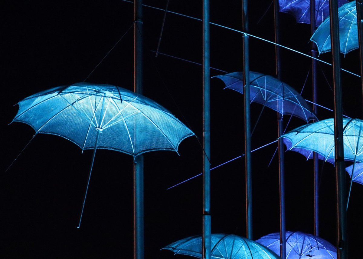 Deštníky jsou osvětlené několika diodovými světly a soluňská samospráva toho aktivně využívá při akcentování různých událostí.