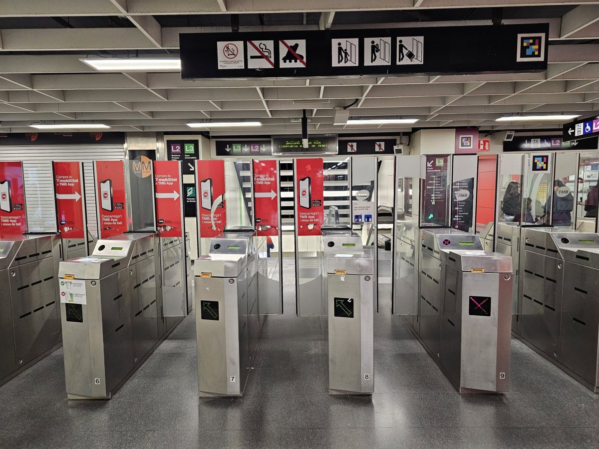 Stanice metra v Barceloně jsou vybaveny obvykle pouze automaty na jízdenky a na nástupišti někdy bývá také automat na pití nebo sladkosti.