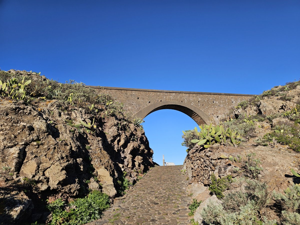 Vesnici Arure od výhledů na západní pobřeží odděluje skalnatý masiv, skrz který pod akvaduktem projdete právě na vyhlídku Mirador de El Santo.