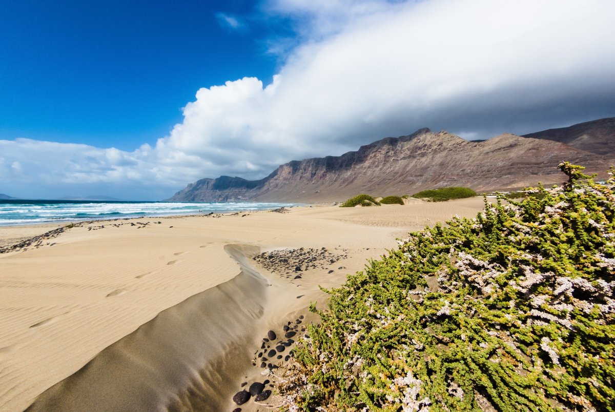 Pláž Famara se řadí k nejkrásnějším čistě přírodním plážím na celých Kanárských ostrovech. Leží na divokém západním pobřežím z jedné strany obklopená slavnými útesy Famara, z druhé rovinatou pouštní krajinou. [btn "10 nejlepších hotelů na Lanzarote" https://booking.com/region/es/lanzarote.en.html?aid=355333;label=p-lanzarote-playafamara] Zrcadlící se skaliska za odlivu Nejpřitažlivější zastihnete pláž Famara za odlivu, kdy na skoro vodorovné…