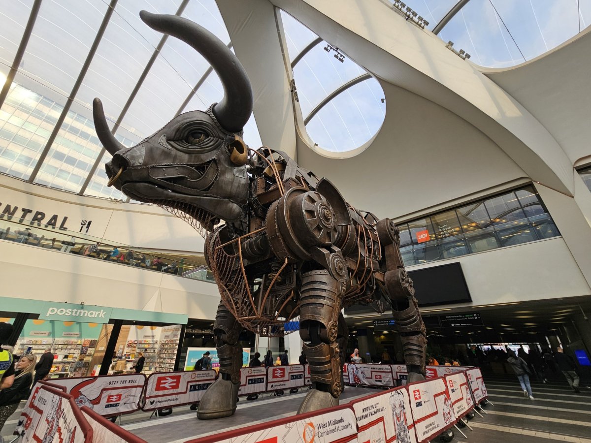 Mezi místními milovaný hlavní symbol Birminghamu najdete každou hodinu, jak zuří v hlavní odbavovací hale stanice Birmingham New Street. Ozzy the Bull, gigantická mechanická socha, zhruba na 5 minut vždy čtvrt hodiny po celé hodině, ožije a vytváří dojem zuřícího býka. [btn "10 nejlepších hotelů Birminghamu" https://www.booking.com/city/gb/birmingham.en.html?aid=355333;label=p-birmingham-ozzy] Kde se vzal Ozzy the Bull? Poprvé byl 33 stop …