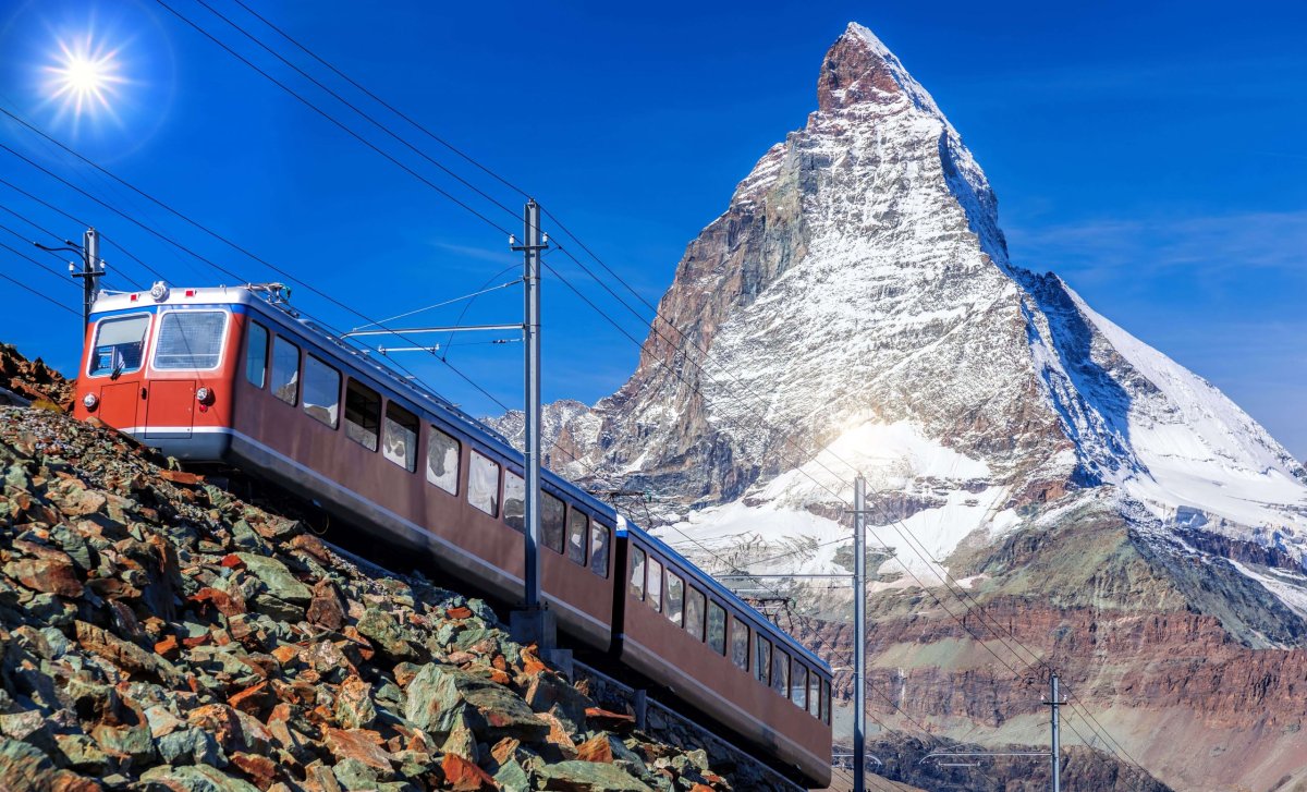 Odsud je nejlepší výhled na Matterhorn a jezero před ním, dá se sem vyjet zubačkou z Zermattu.