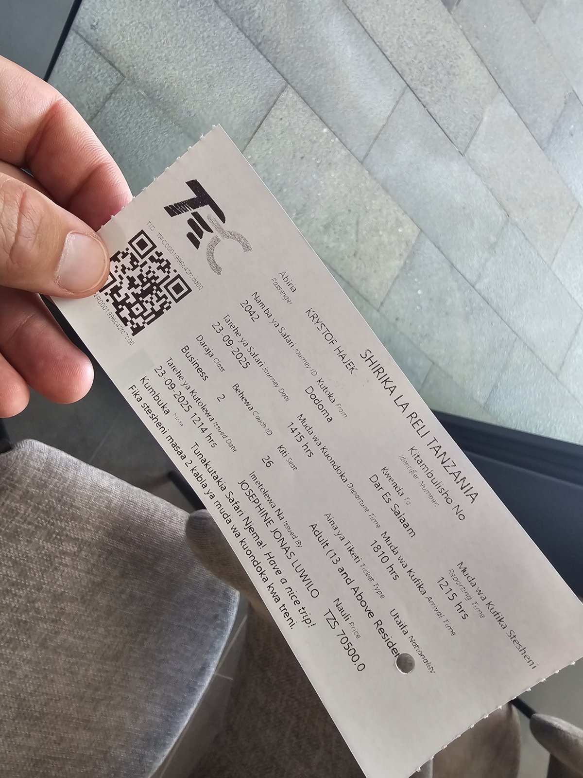 Jízdné na moderní vlaky SGR lze koupit i přes třetí strany jako například přes 12go.asia, který rádi využíváme při cestách po Asii. V Tanzanii ale nezafungoval vůbec dobře. Jízdenky na vlaky tento web zařizuje přes lokálního prostředníka, který však ani po několikanásobných urgencích lístek nezaslal a já proto musel koupit novou jízdenku až na nádraží.