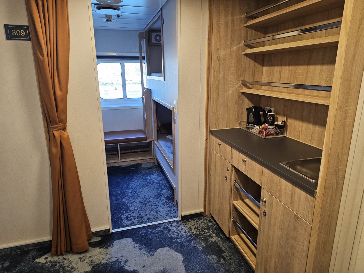 Společné koupelny mě mile překvapily – čistota vzorná, úklid během plavby minimálně třikrát. Ve sprchách žádná plíseň, což na lodi vážně potěší.