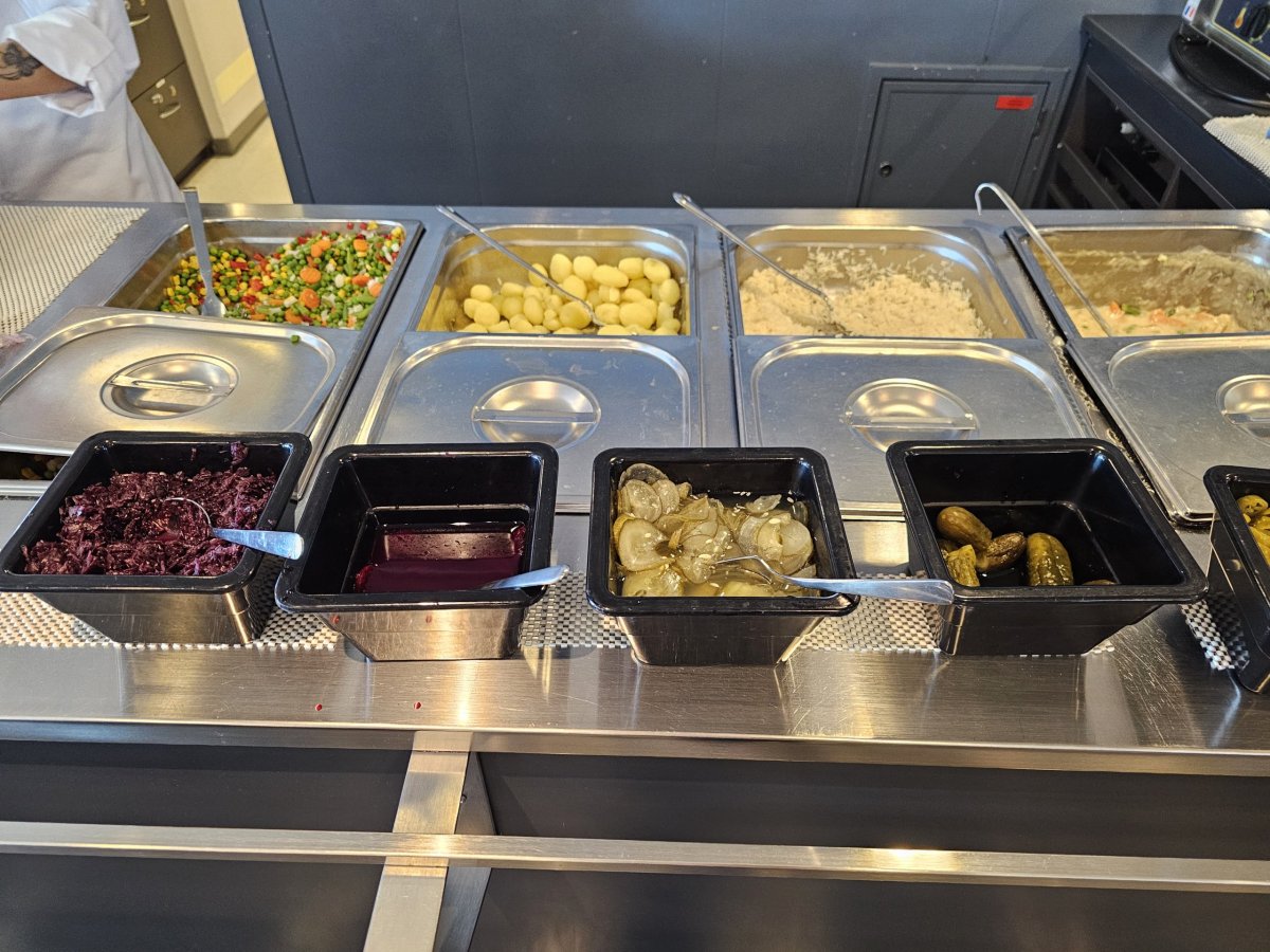 K večeři si navíc sami můžete nabrat do misky jiné druhy zeleniny, dále jsou v misce navíc krevety a dezert. U obědů předkrm a dezert není dostupný.