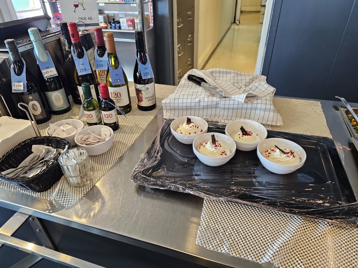 Ceny baget a sendvičů se pohybují mezi 28 DKK a 45 DKK, kávu nebo čaj zakoupíte za 15 DKK a ovoce (hrušky nebo jablka) za 9 DKK.