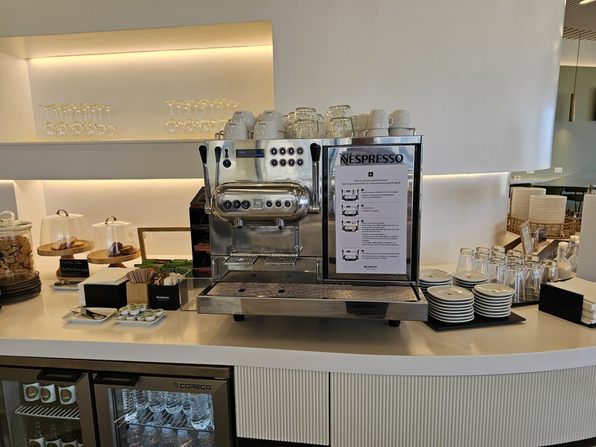 Asi nejlepší v salonku je vcelku dobrá káva s kapslového automatu Nespresso.