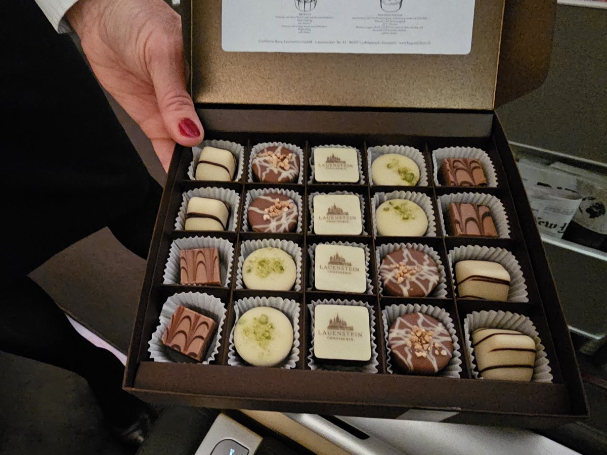 Jako finální dezert dostáváme ještě pralinky, které má Lufthansa vždy famózní.