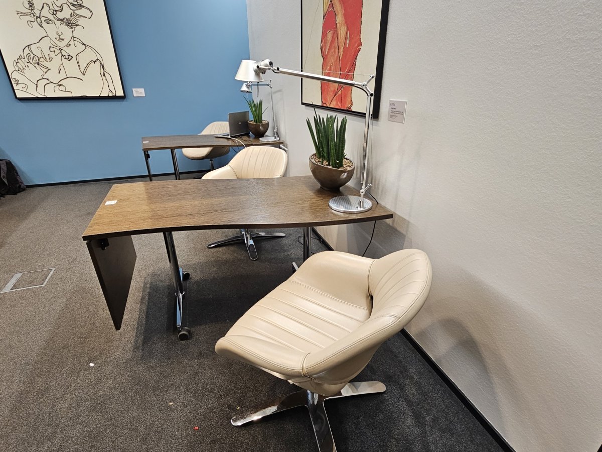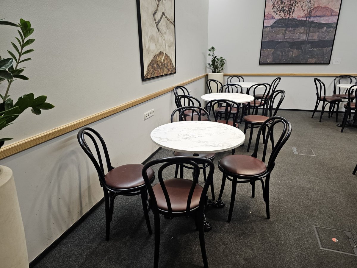 Najdete zde také malý koutek s pracovními stoly pro práci na notebooku oddělený skleněnou stěnou od zbytku salonku, takže je zde klid a ticho.