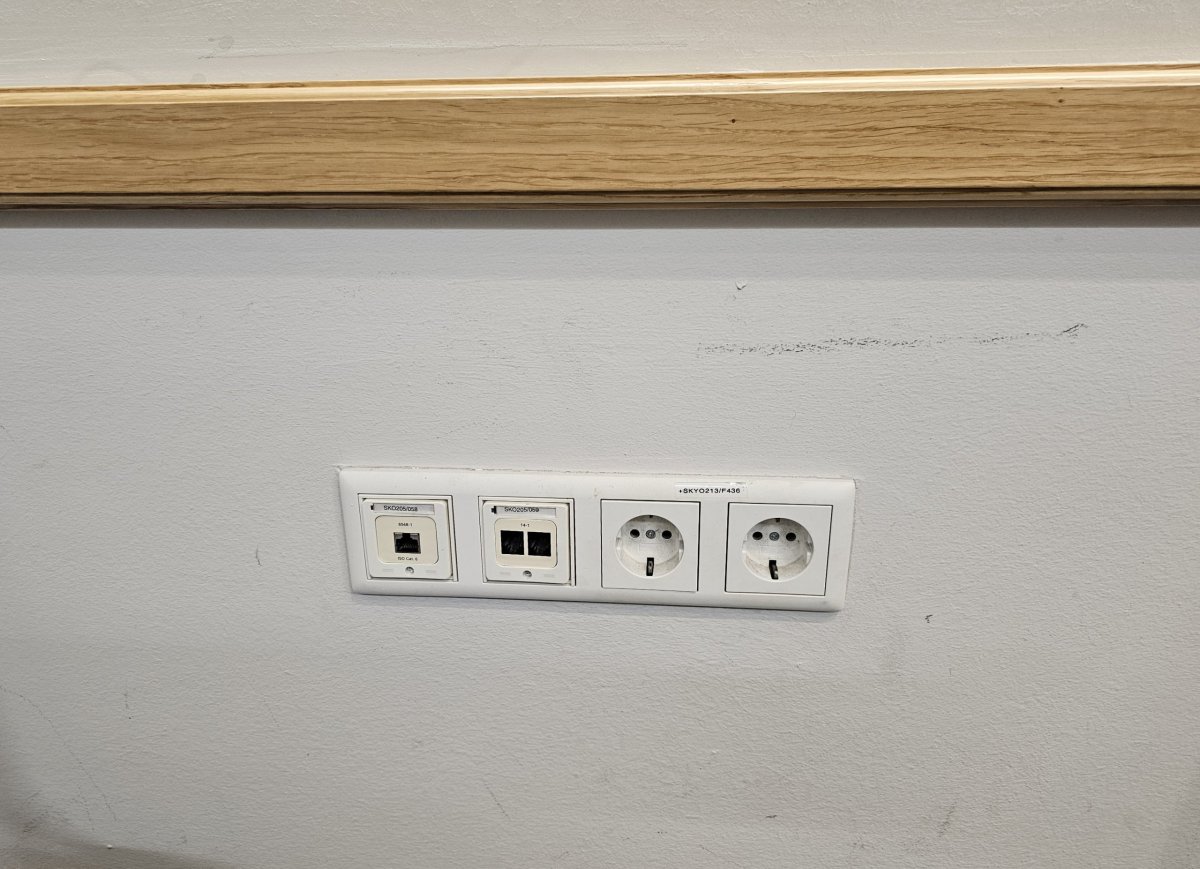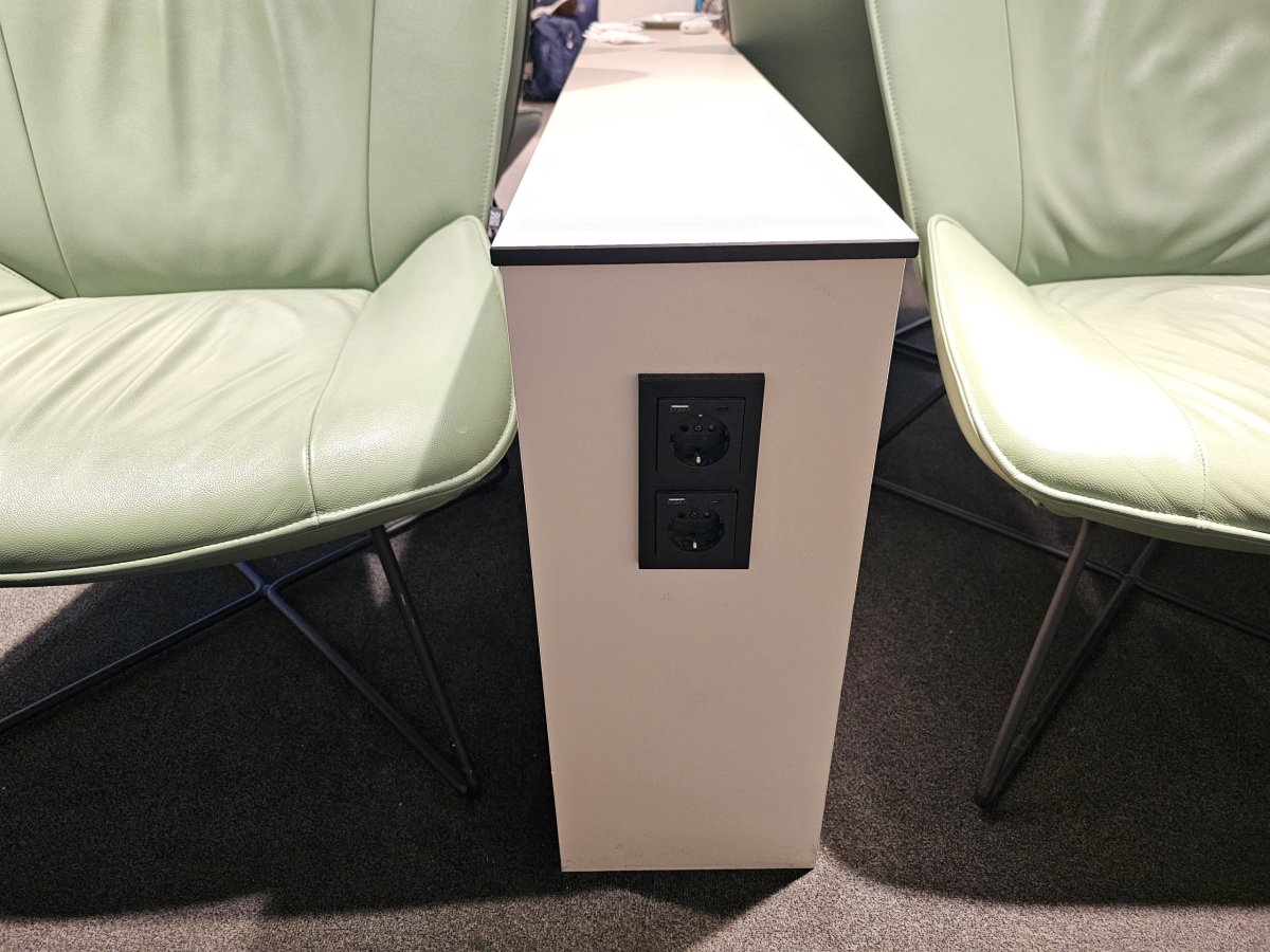 Zástrčky pro nabíjení elektroniky jsou k dispozici u většiny křesílek a všech pracovních ploch.