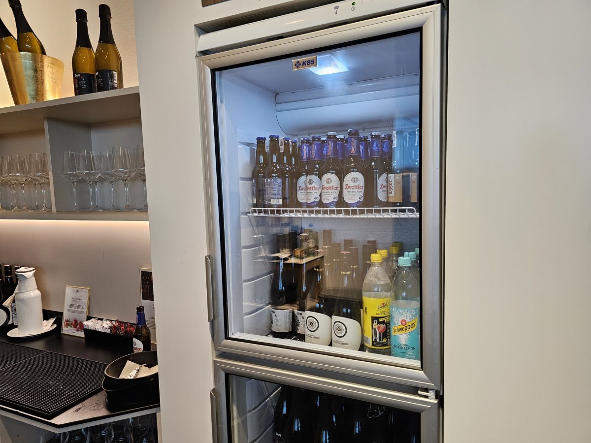 - Nealkoholické nápoje – na dvou místech salonku jsou lednice s velkým množstvím sodovek ve skleněných lahvích, infuzované vody a také Coca cola, Coca cola zero, Fanta, Sprite z post-mixu