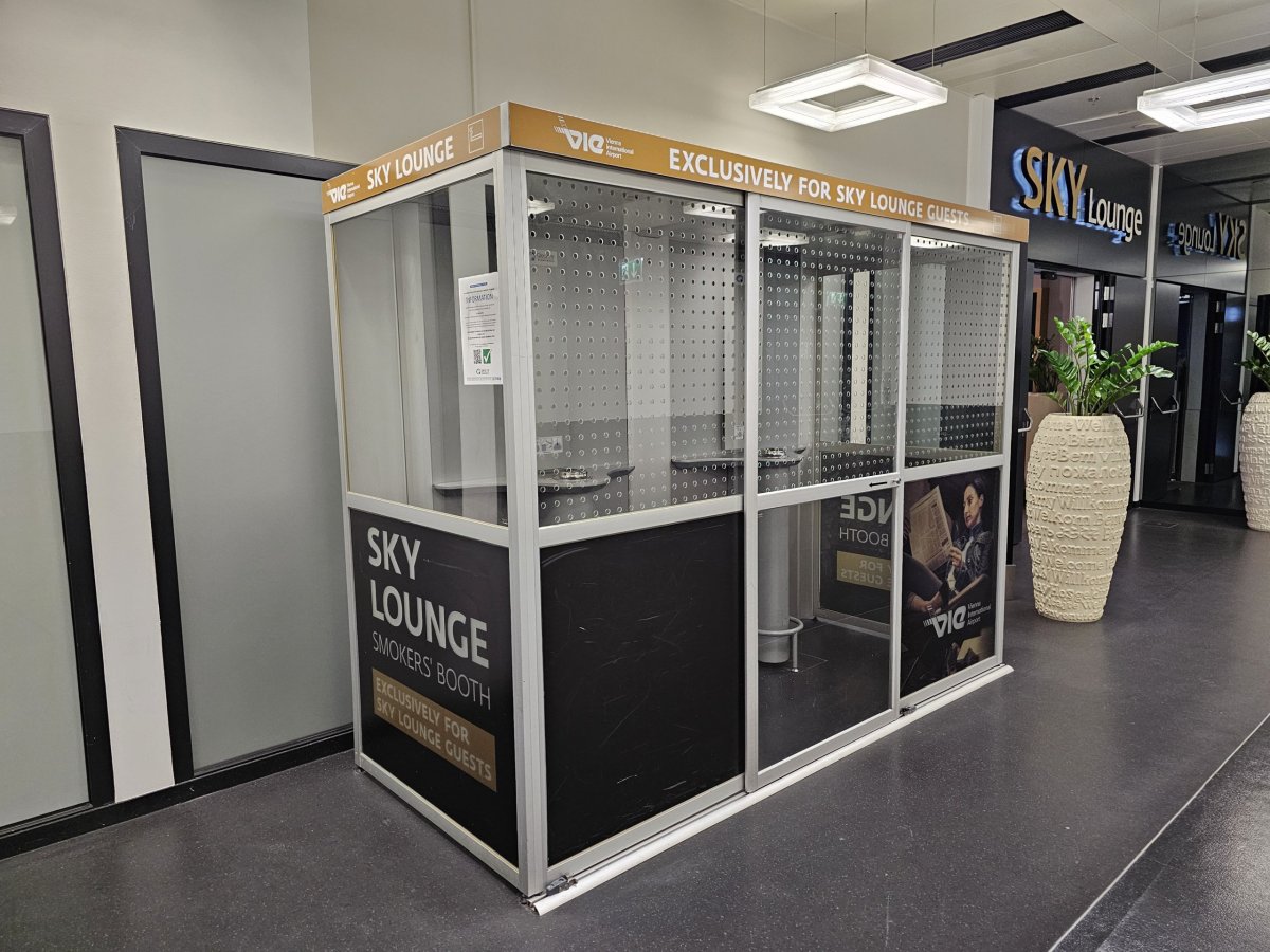 Před vstupem do salonku mohou kuřáci využít odvětrávanou budku určenou pouze pro návštěvníky SKY Lounge.