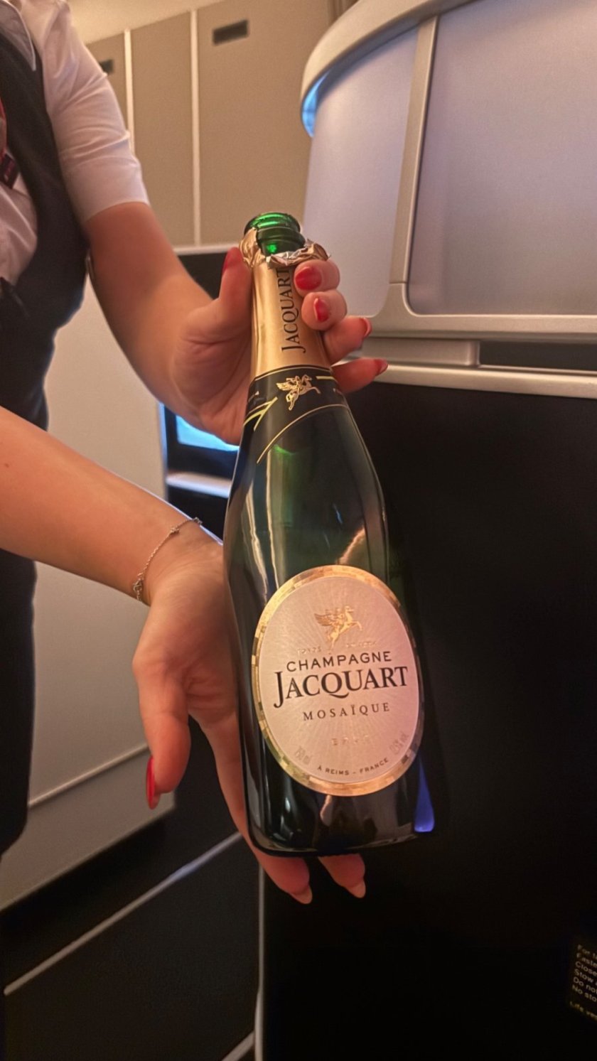 Protože se formálně jednalo o let v ekonomické třídě, jen s příplatkem za lepší sedadlo, servis i práce posádky byla stejná.
