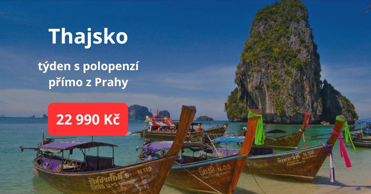 Za skvělou cenu nyní můžete pořídit týdenní nebo dvoutýdenní dovolenou v Thajsku, kam poletíte přímým letem z Prahy. Jedná se o zítřejší odlet 14. ledna v 11:30 s tím, že pobyt je naplánován v…