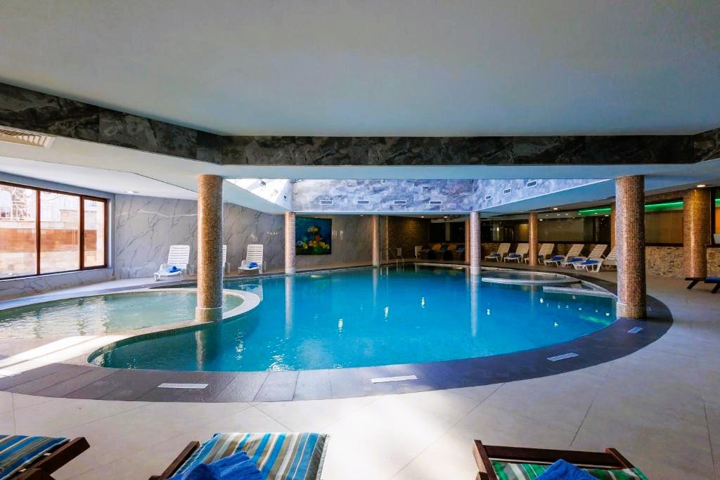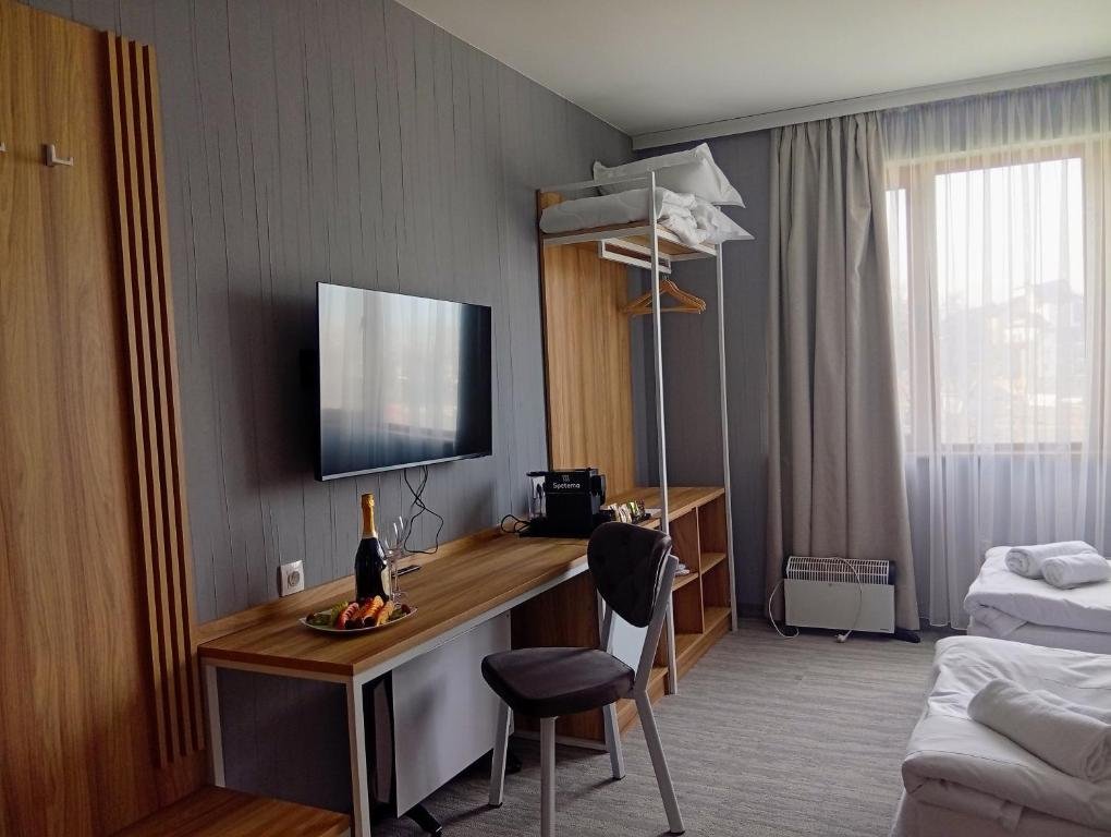 Hotel Vihren Royal Palace se nachází v oblíbeném horském středisku Bansko, přibližně 100 metrů od dolní stanice gondoly a jen krátkou procházkou od centra města. Díky své poloze je vhodnou volbou zejména pro milovníky zimních sportů, ale také pro hosty, kteří chtějí poznat místní restaurace, obchody a atmosféru historického centra Banska. Hotel nabízí ubytování v pokojích, studiích a apartmánech s moderním vybavením, které poskytují komfortní zázemí pro páry i rodiny s dětmi. Součástí hotelu je restaurace s nabídkou bulharské i mezinárodní kuchyně a lobby bar vhodný pro posezení u kávy nebo drinku. Hosté mohou využít také hotelové wellness centrum s vnitřním bazénem, vířivkou, saunou, parní lázní a fitness centrem. K dispozici jsou rovněž masáže a další relaxační procedury. Hotel tak nabízí kombinaci pohodlného ubytování, skvělé polohy a zázemí pro odpočinek po dni stráveném na horách.