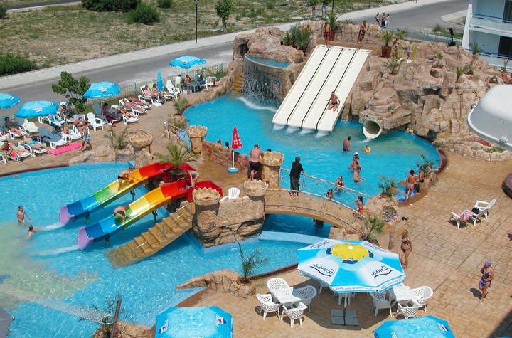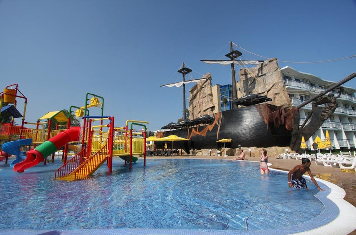 Vstupní hala, recepce, směnárna, výtah, restaurace, bar v lobby a u bazénu, WiFi v lobby; za poplatek trezor na recepci (cca 5 BGN/den), dětská postýlka za 10BGN/den, internetový koutek, bazén s vyhrazenou částí pro děti, bazén se skluzavkami, slunečníky a lehátka zdarma, bazén a bar v miniaquaparku; lehátka a slunečníky u bazénu zdarma.Ubytování