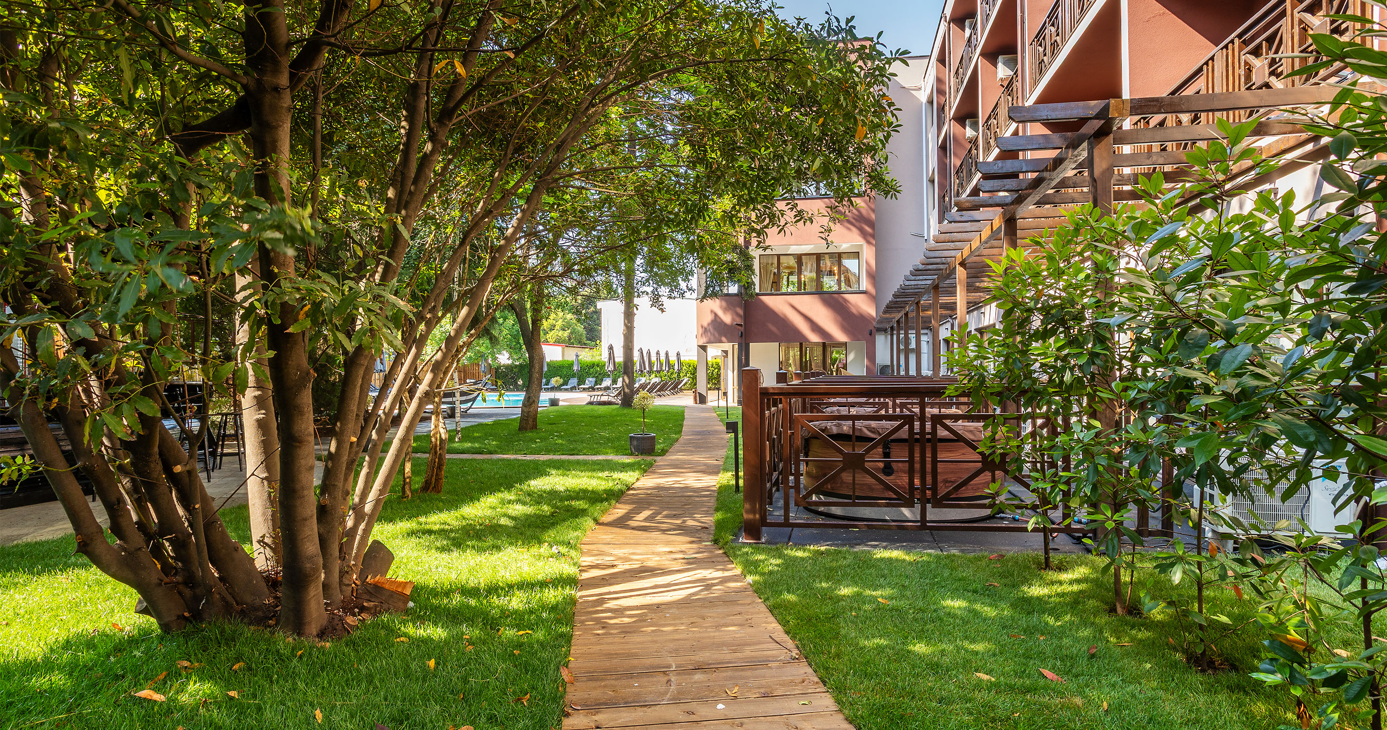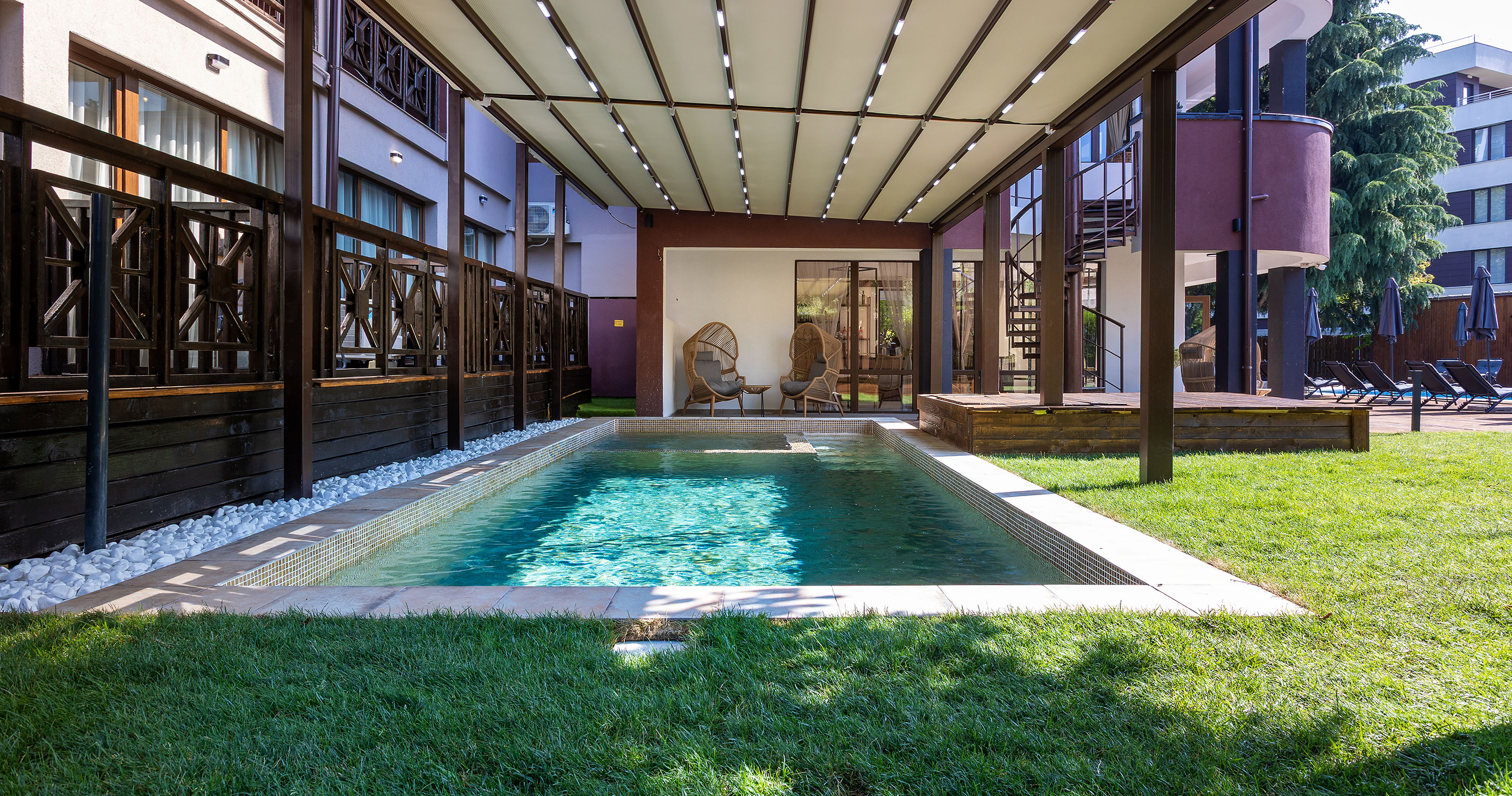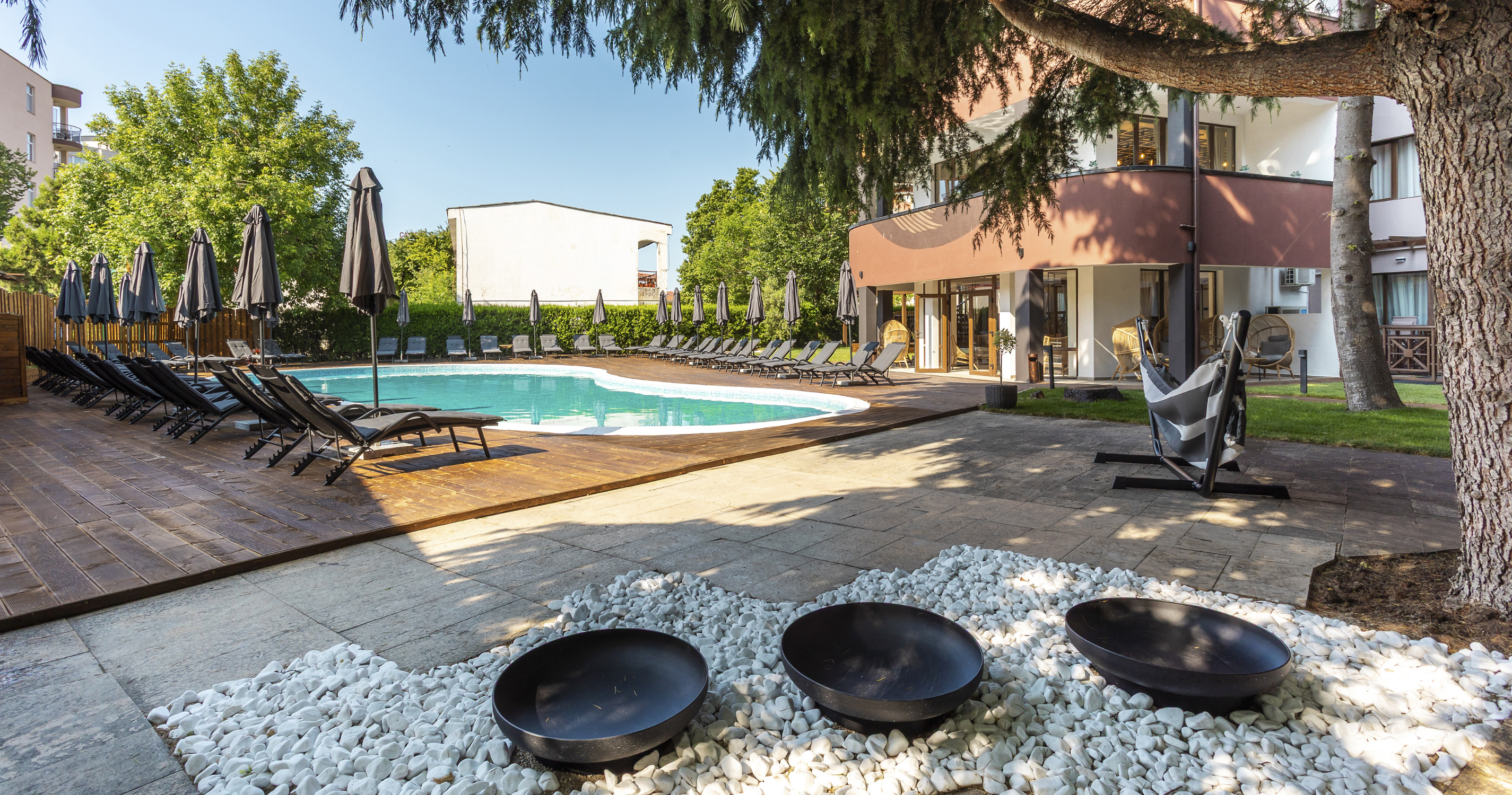 - Lehátka a slunečníky u bazénu zdarma