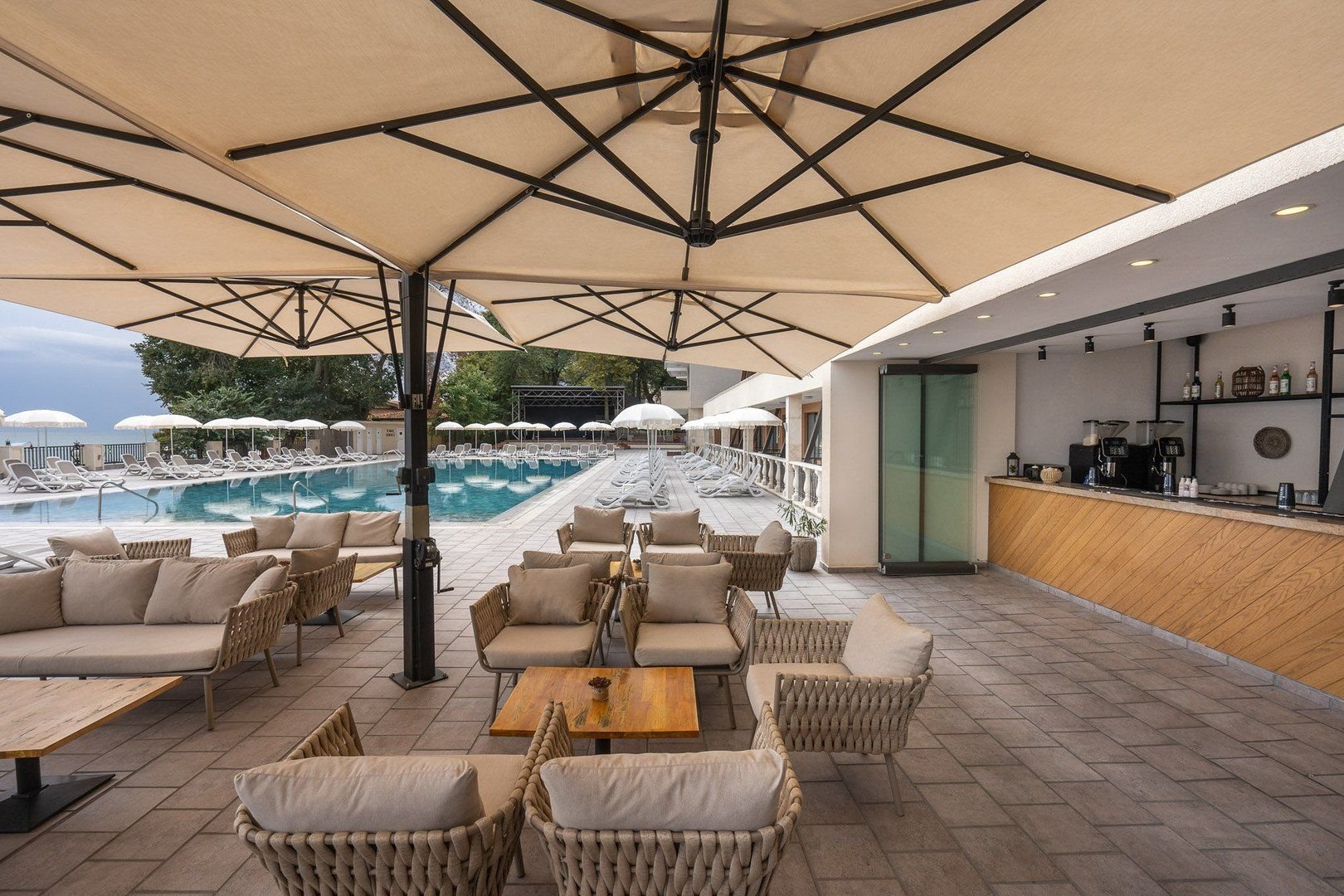 Vstupní hala, recepce, směnárna, hlavní restaurace, 4 à la carte restaurace, SKY restaurace a bar s infinity bazénem (pouze pro dospělé v rámci konceptu), snack restaurace, cukrárna a kavárna, bar u bazénu, lobby bar, bar na pláži, salon bar, WiFi v lobby a na pokojích zdarma, bazén, vnitřní bazén s vířivkou, lehátka, slunečníky a osušky u bazénu zdarma; za poplatek parkování, obchůdek, lékař.