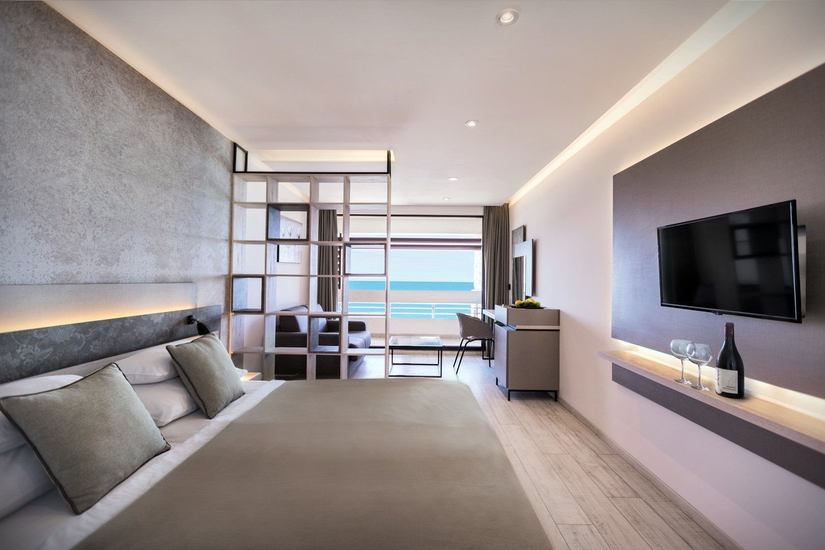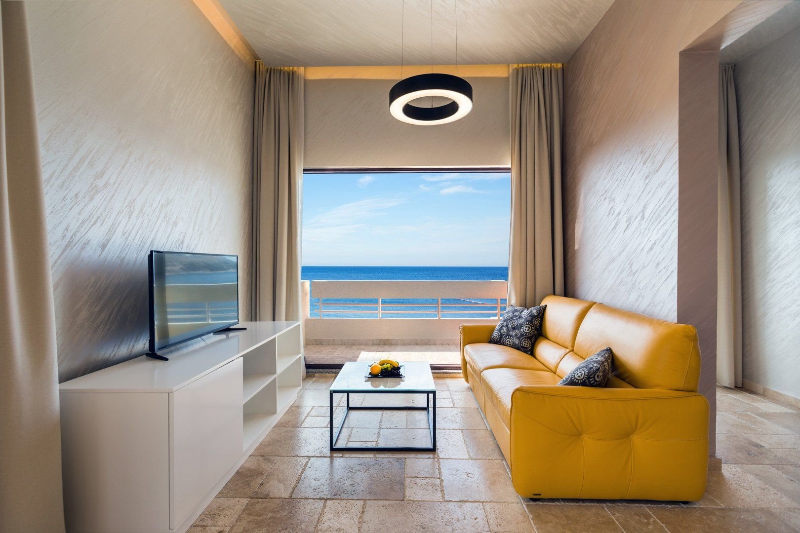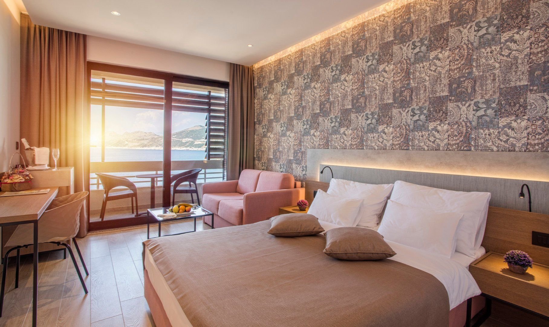 Dvoulůžkový pokoj s přistýlkou (35 m2) má vlastní soc. zařízení (sprcha), WC, klimatizace, TV, Wi-Fi, minibar, terasa.Junior Suita s výhledem na moře (45 m2) má vlastní soc. zařízení (sprcha), WC, klimatizace, TV, Wi-Fi, minibar, terasa.Rodinný apartmán (65 m2) má obývací pokoj, dvě oddělené ložnice, kuchyňka, vlastní soc. zařízení (vana), WC, TV, Wi-Fi, minibar, terasa.