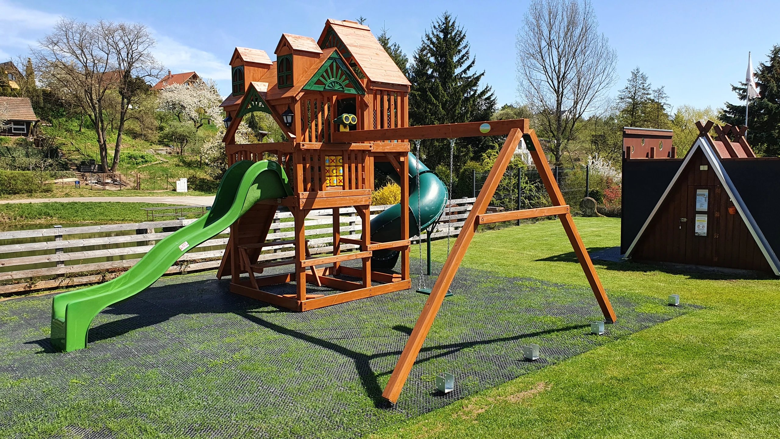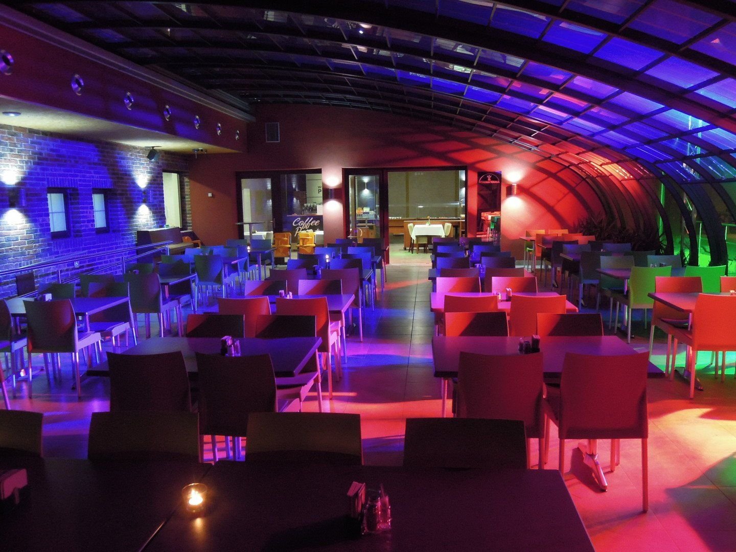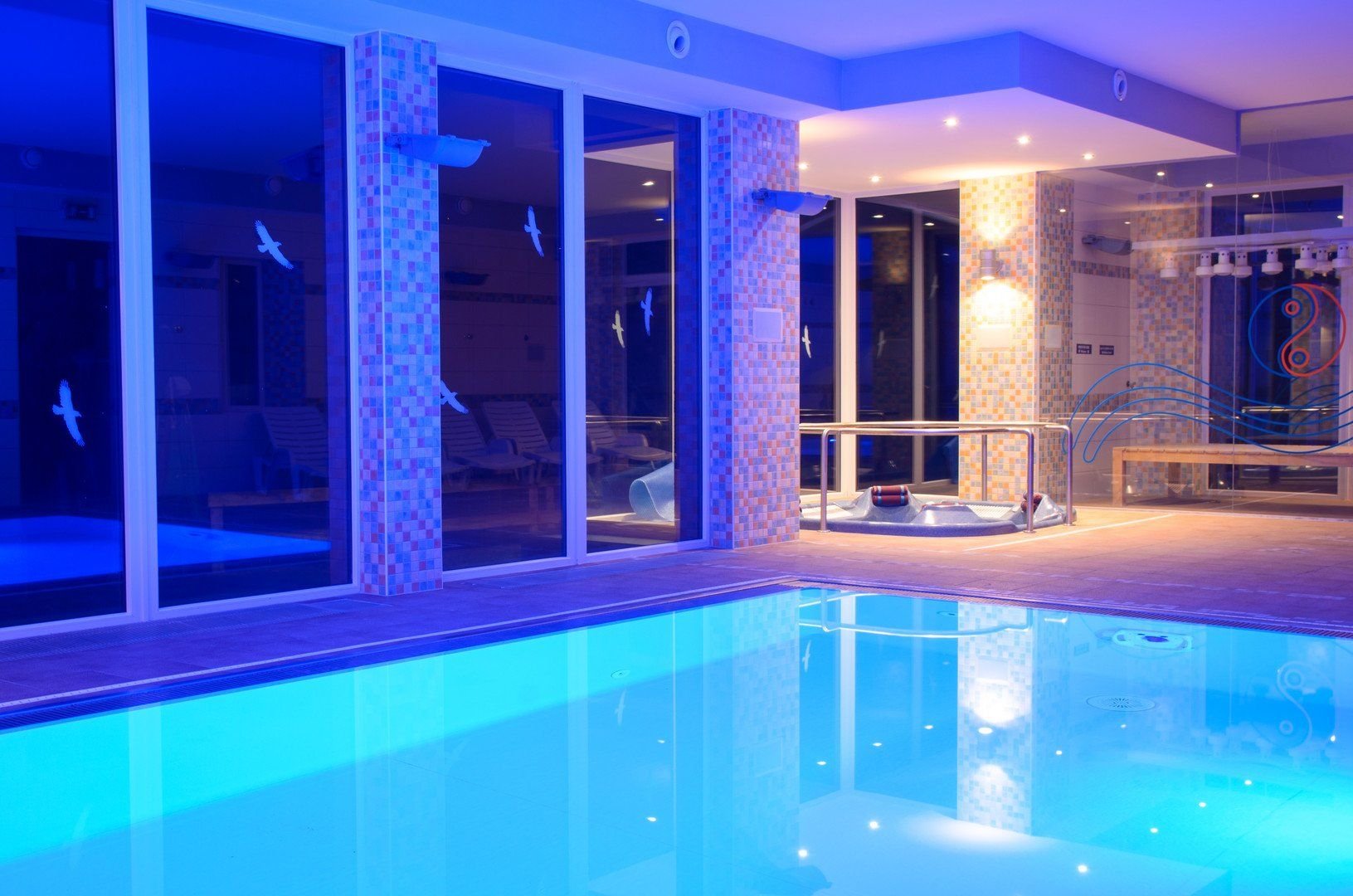 Koupání - venkovní dohřívaný zážitkový bazén se slanou vodou, s tobogánem, perličkou, masáží a chrličem (po celou sezónu neomezeně v ceně). ubytování). Vnitřní slaný teplý bazén za poplatek.