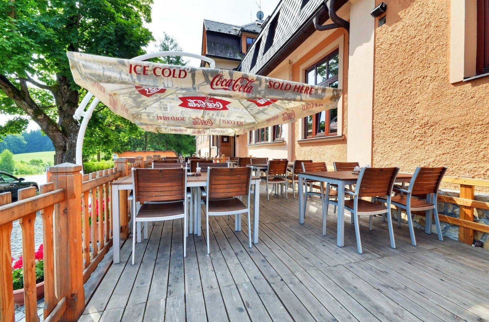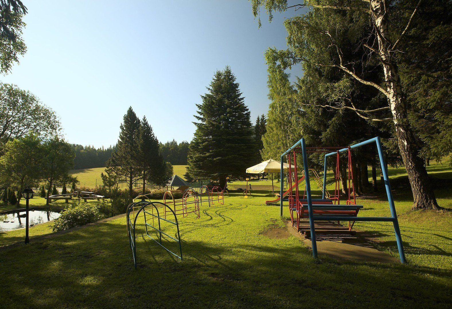 Restaurace s letní terasou, denní a noční bar, krytý bazén (8 x 4 m), infrasauna, relaxační studio (masáže, kosmetické služby), kulečník, dětský koutek, dětské hřiště, tenisový kurt s umělým povrchem, venkovní gril a ohniště, půjčovna horských kol.
