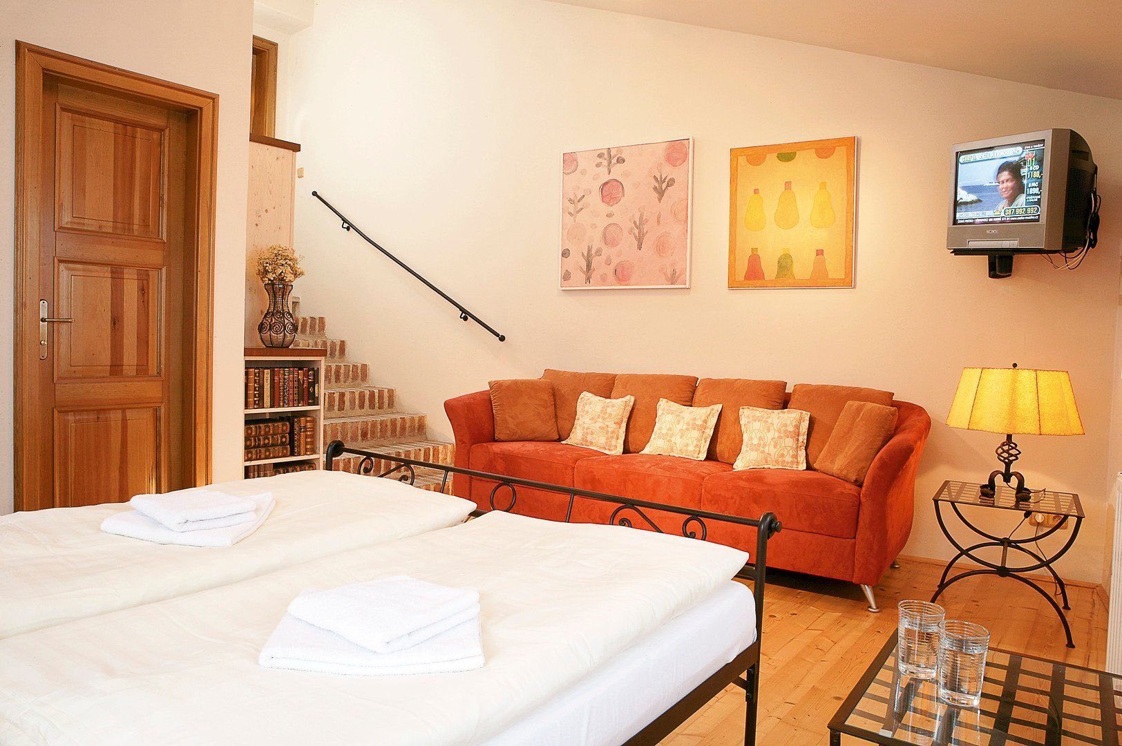 V první budově, hotel Leonardo I., je umístěna centrální recepce. V interiéru najdete znaky hned několika architektonických stylů od původních renesančních trámových stropů až po zachovalé barokní schodiště. Druhá budova, označena jako Leonardo II., nabízí romantické ubytování s historickou atmosférou. Součástí hotelu jsou společné jídelny určené pro snídaně i pro večerní posezení. Wi-Fi k dispozici po celém hotelu. Hotel nabízí zprostředkování různých programů – návštěva zámku, prohlídka města, vyjížďky na koních, výlety za pamětihodnostmi apod.