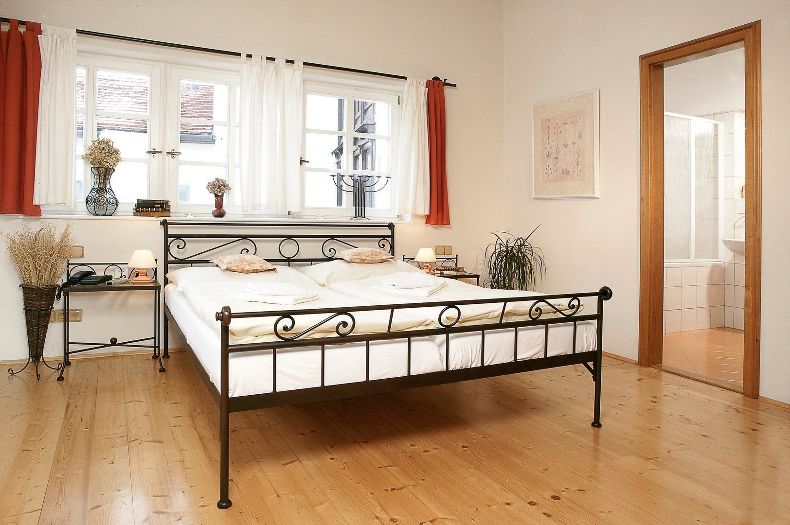 Dvoulůžkové pokoje Standard a Nadstandard (některé s možností přistýlky) se sprchou nebo vanou a WC, TV/SAT, minibar.