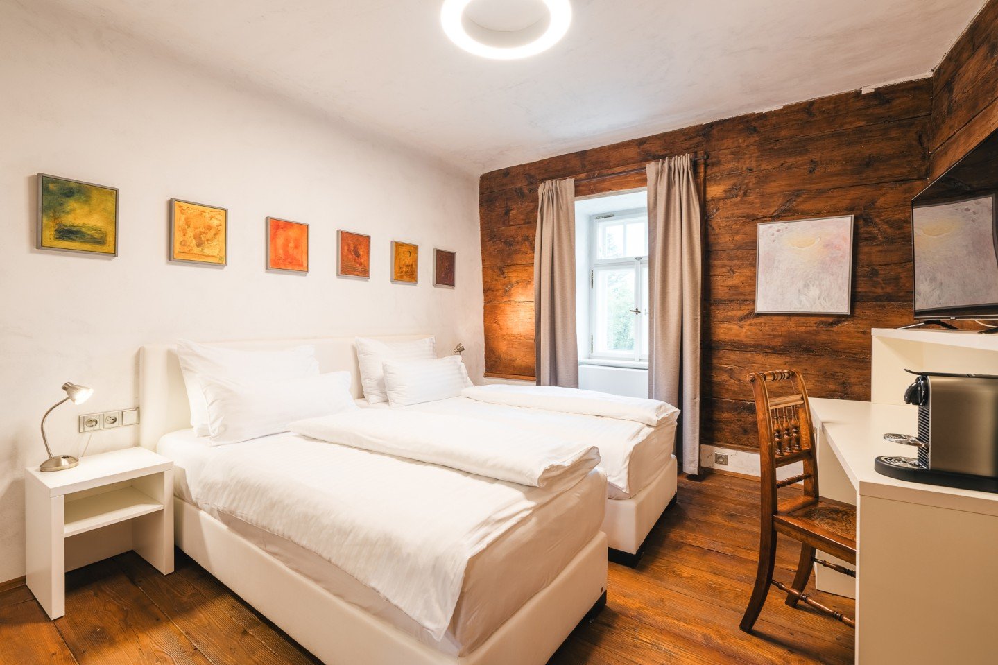 Jednolůžkové - čtyřlůžkové pokoje (některé s možností přistýlky) se sprchou nebo vanou a WC, TV/SAT, lednička, Wi-Fi, fén, trezor, telefon,elektronický bezpečnostní zámek.