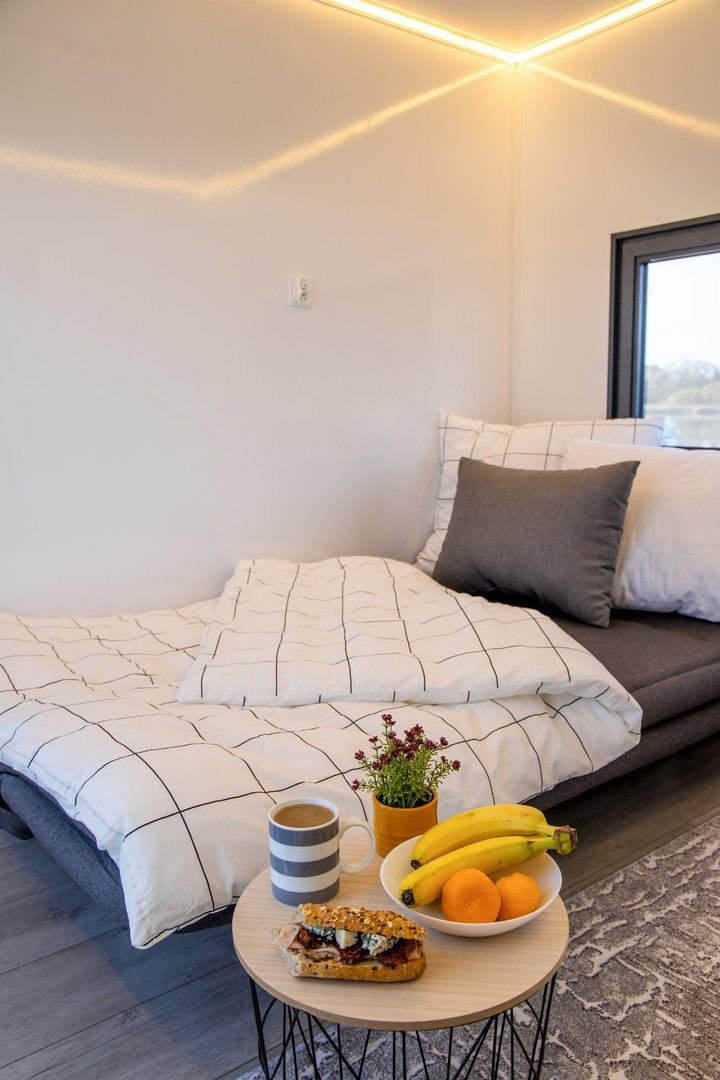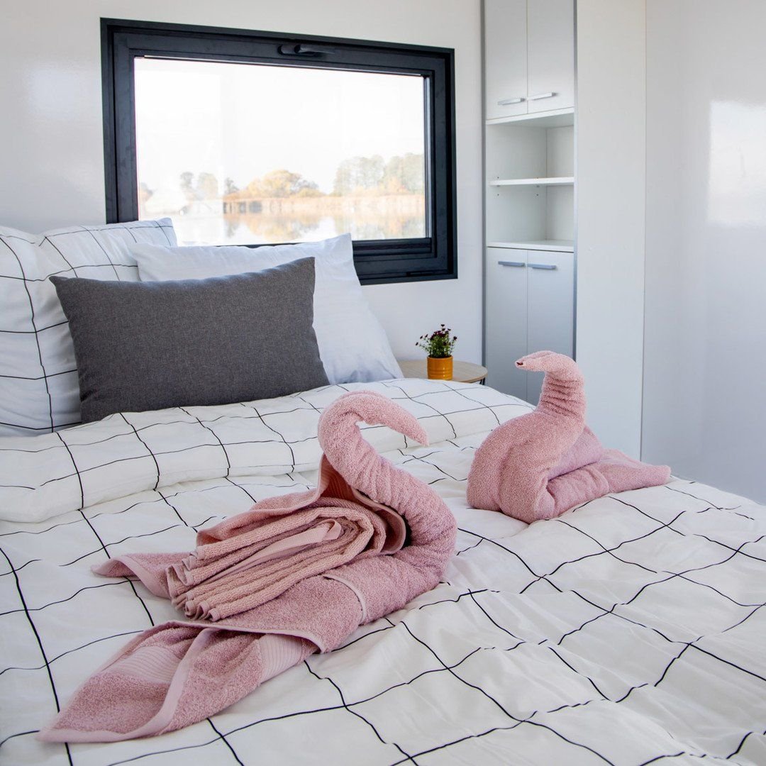 Moderně vybavené hausbóty se sprchou, WC, kuchyňkou, ložnicí, obývacím pokojem. Jeden z hausbótů má i svou vlastní saunu.