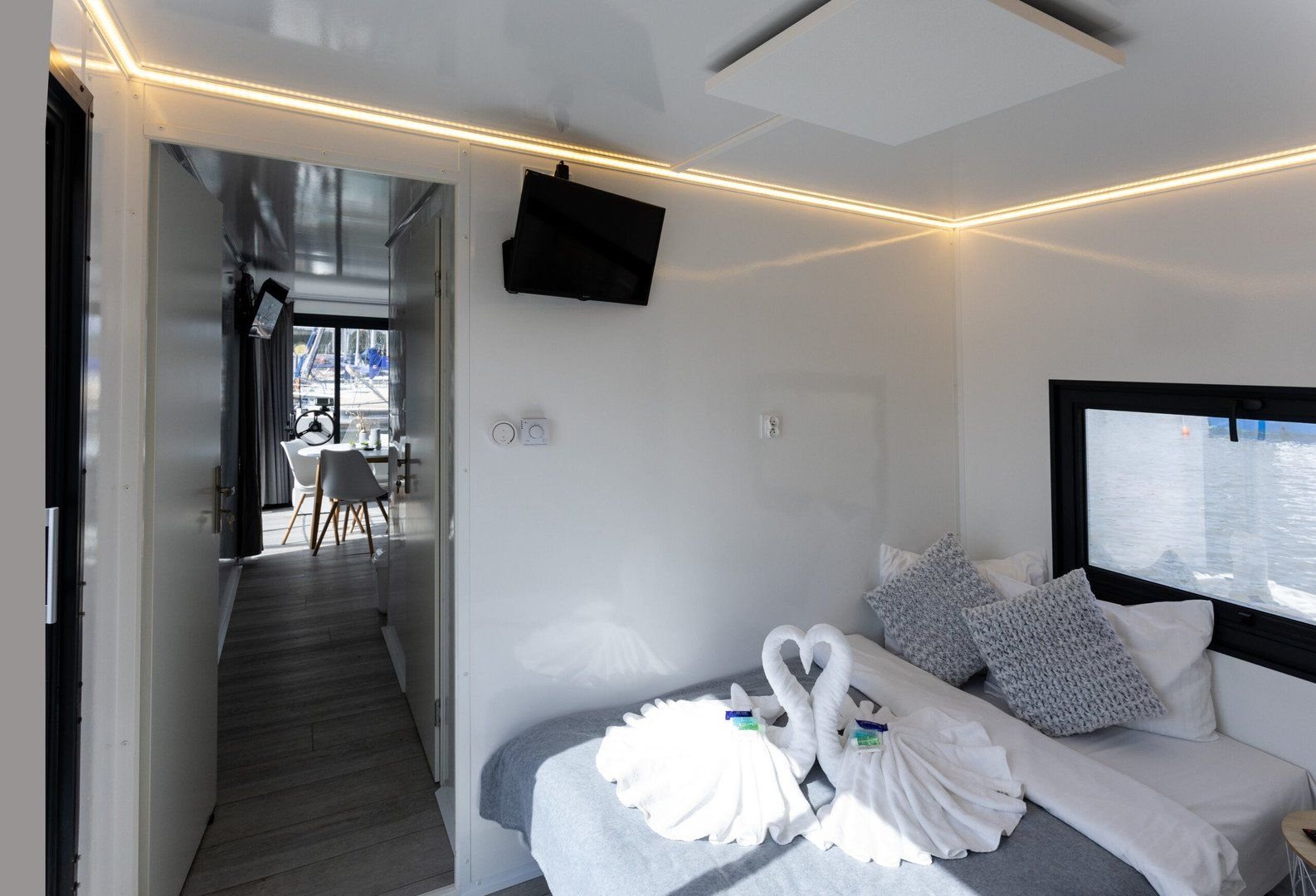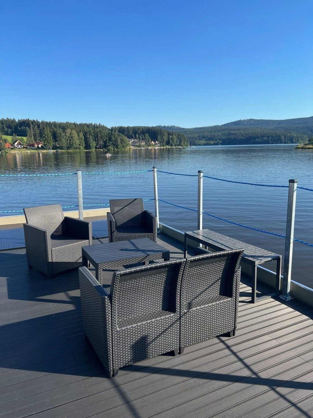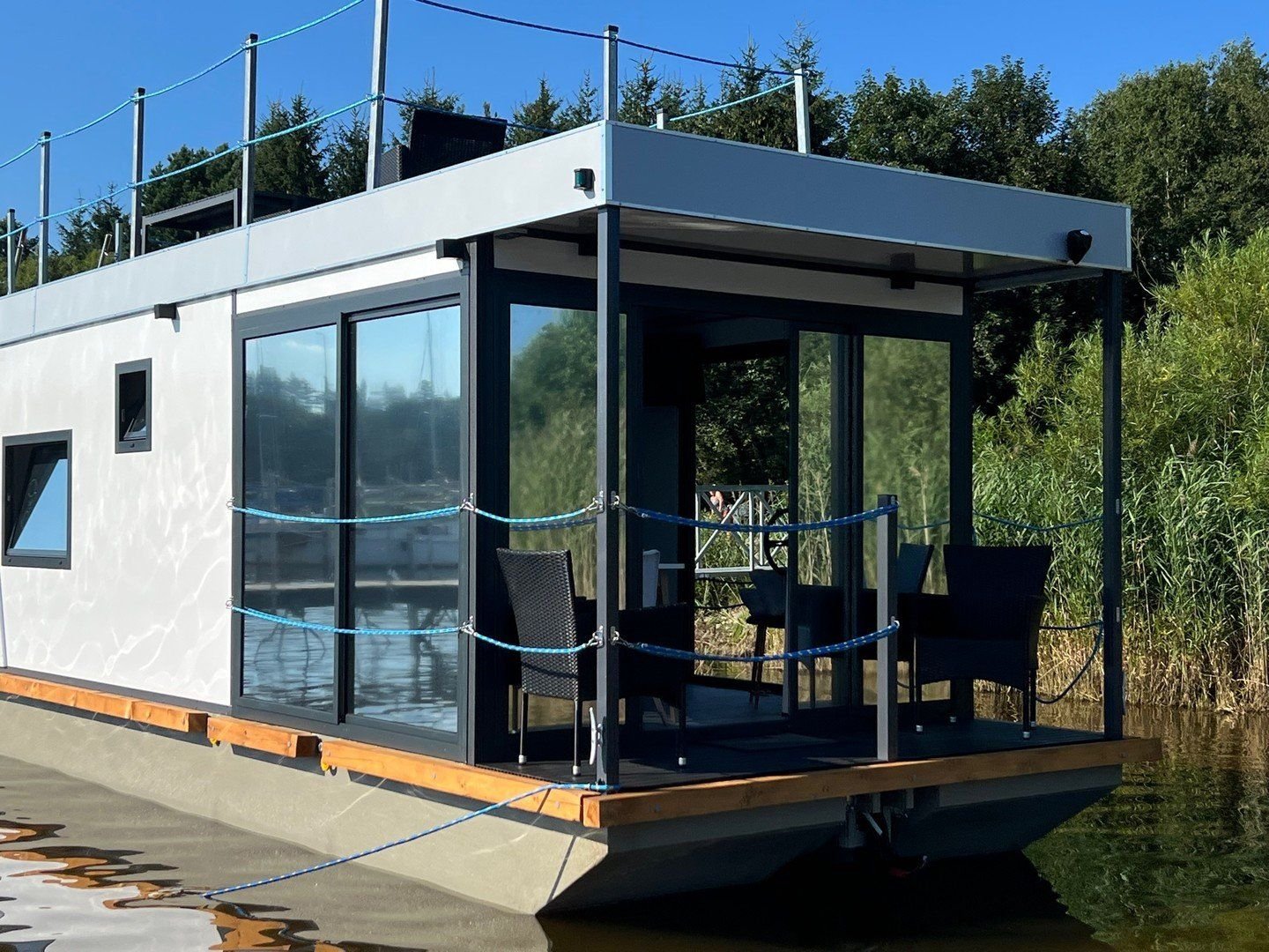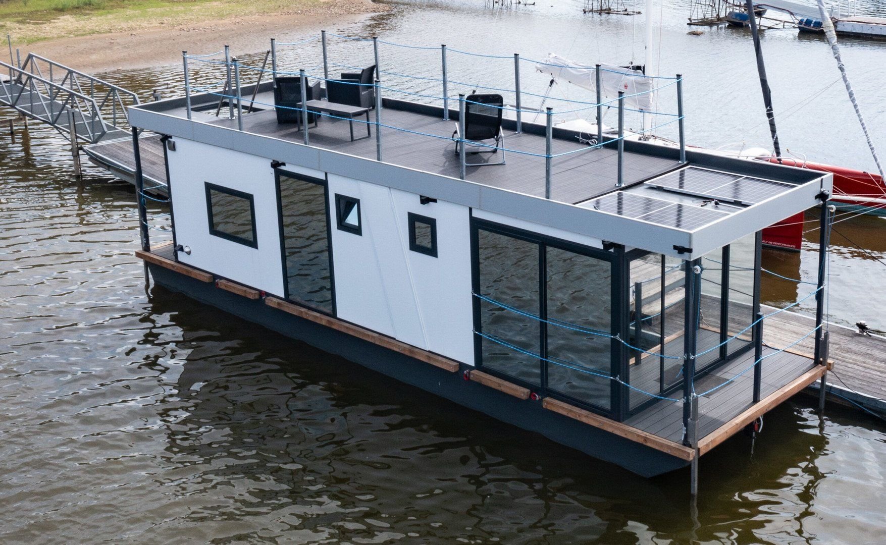 Hausbót Erik2 x samostatná ložnice s dvojlůžkem 120 x 190 mPlně vybavený kuchyňský kout - varná deska, lednice, mrazákKoupelna s vestavěným WC, umyvadlem a sprchovým koutemObývací pokoj s pohovkou a jídelním setem Krytá venkovní terasa s posezením a výhledem na LipnoStřešní terasa s posezením a prostorem na relaxGril, TV, WifiHausbót David (s privátní saunou)Moderní prostory s vlastní privátní saunouLožnice s dvoulůžkem o velikosti 160 x 200 mKoupelna s vestavěným WC, umyvadlem, sprchovým koutem a infra saunouPlně vybavený kuchyňský kout s varnou deskou, lednicí s mrazákemObývací pokoj s pohovkou a jídelním setemKrytá venkovní terasa s posezením a výhledem na LipnoVelká střešní terasa s posezením a prostorem pro relax