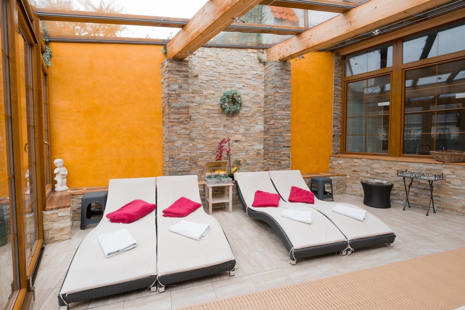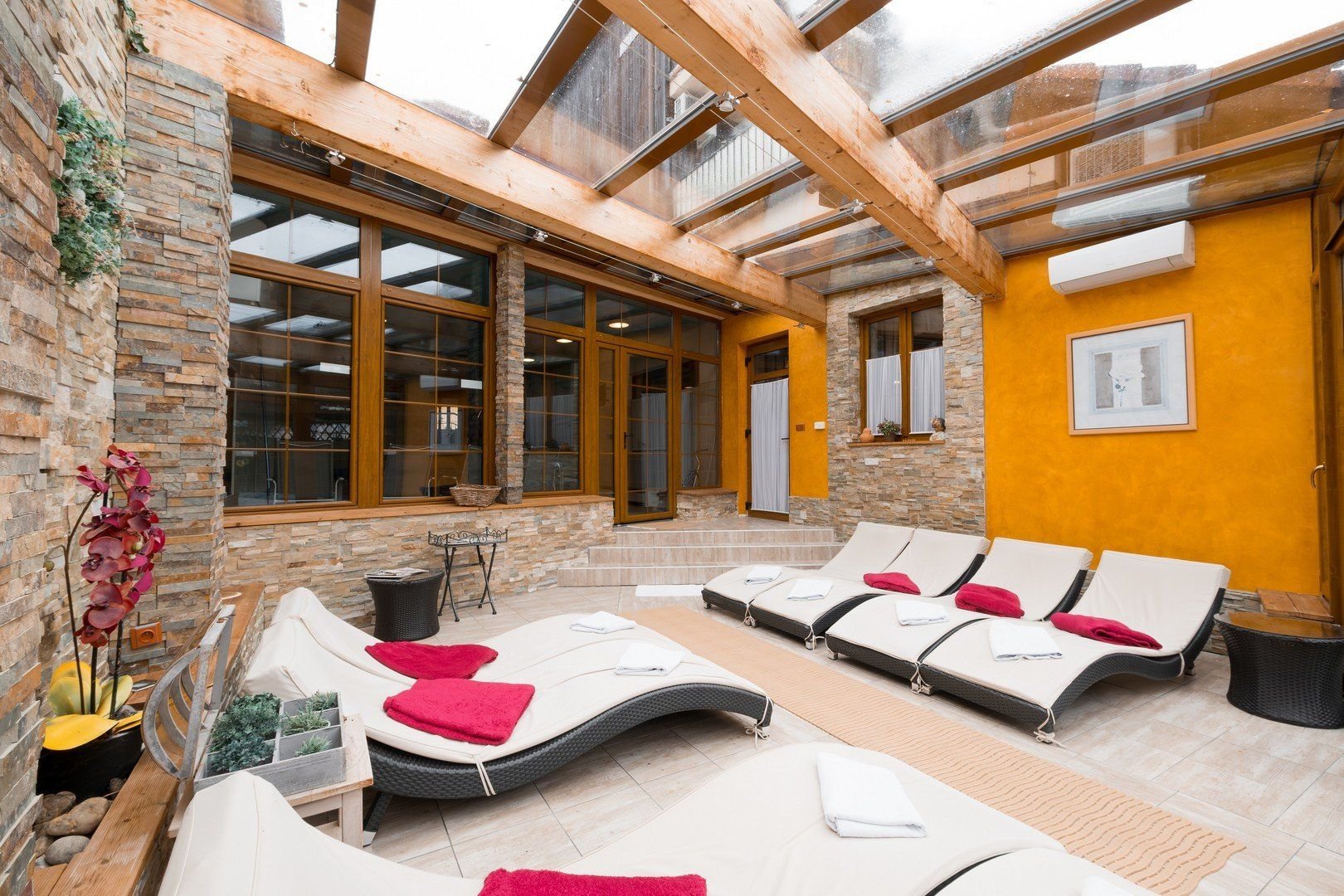 Recepce, restaurace, Wi-Fi, wellness centrum s bazénem, parkoviště, bezbariérový přístup.