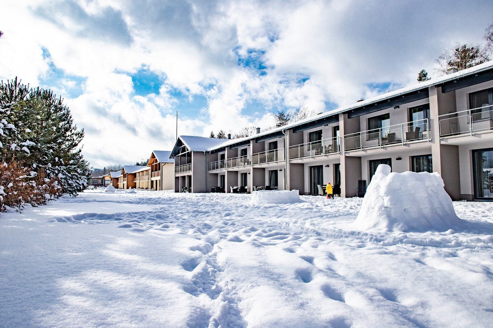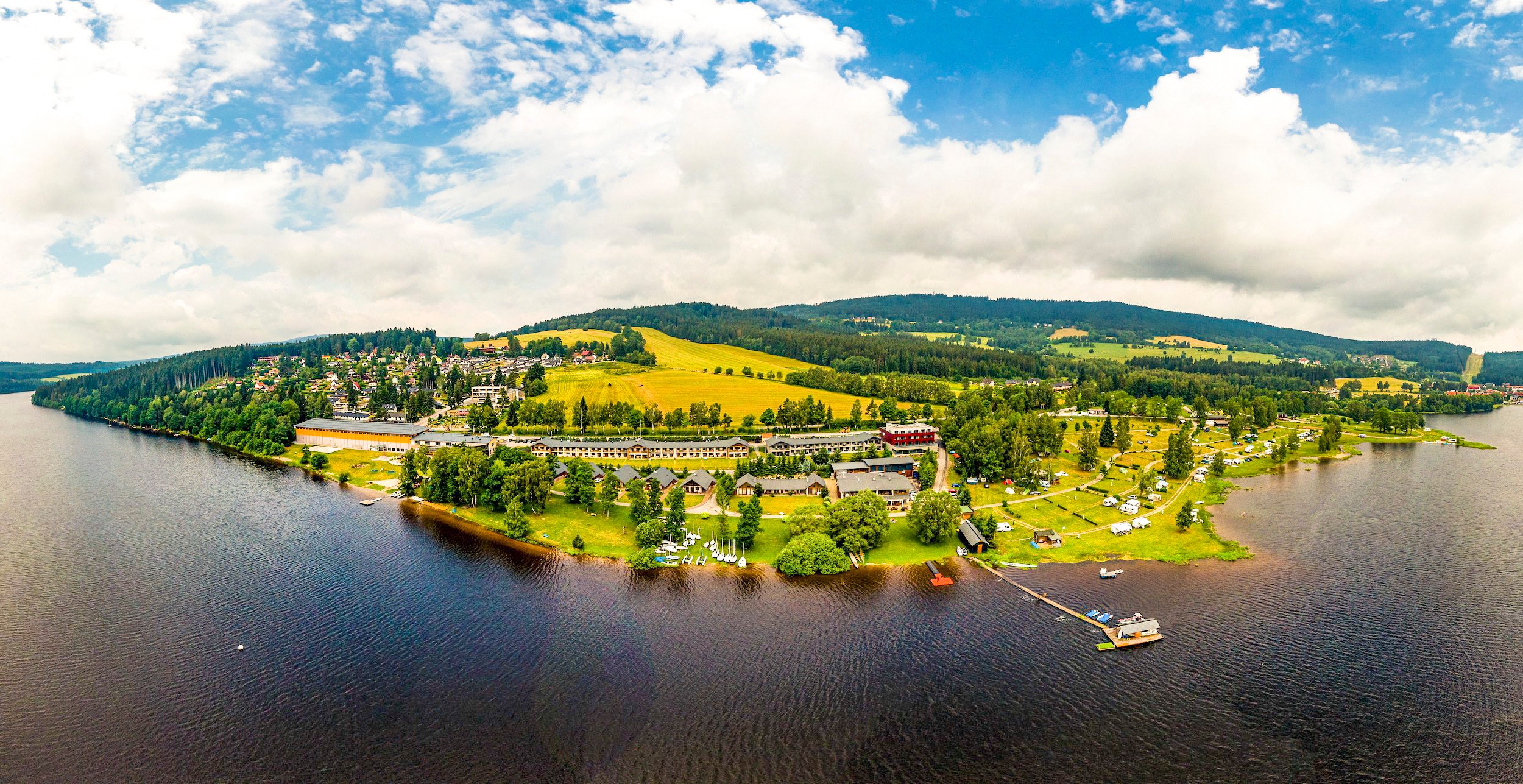 Hotel: Double, Superior Double Room, Family Room, Junior Suite, luxusní apartmá s vlastní terasou a grilem a DeLuxe Domy.Domy Deluxe (hotelová depandance) - luxusní domy na břehu Lipna pro 4 nebo 8 osob.Chalet: samostatně stojící plážový dům pro 5 osob s kompletním vybavením a výhledem na Lipno.Pokoje mají vlastní sociální zařízení (koupelna se sprchou a WC, fén, župan, přezůvky), satelitní TV s rádiem a budíkem, minibar s nabídkou alkoholických a nealkoholických nápojů, čajový a kávový set, bezpečnostní schránku, telefon, Wi-Fi